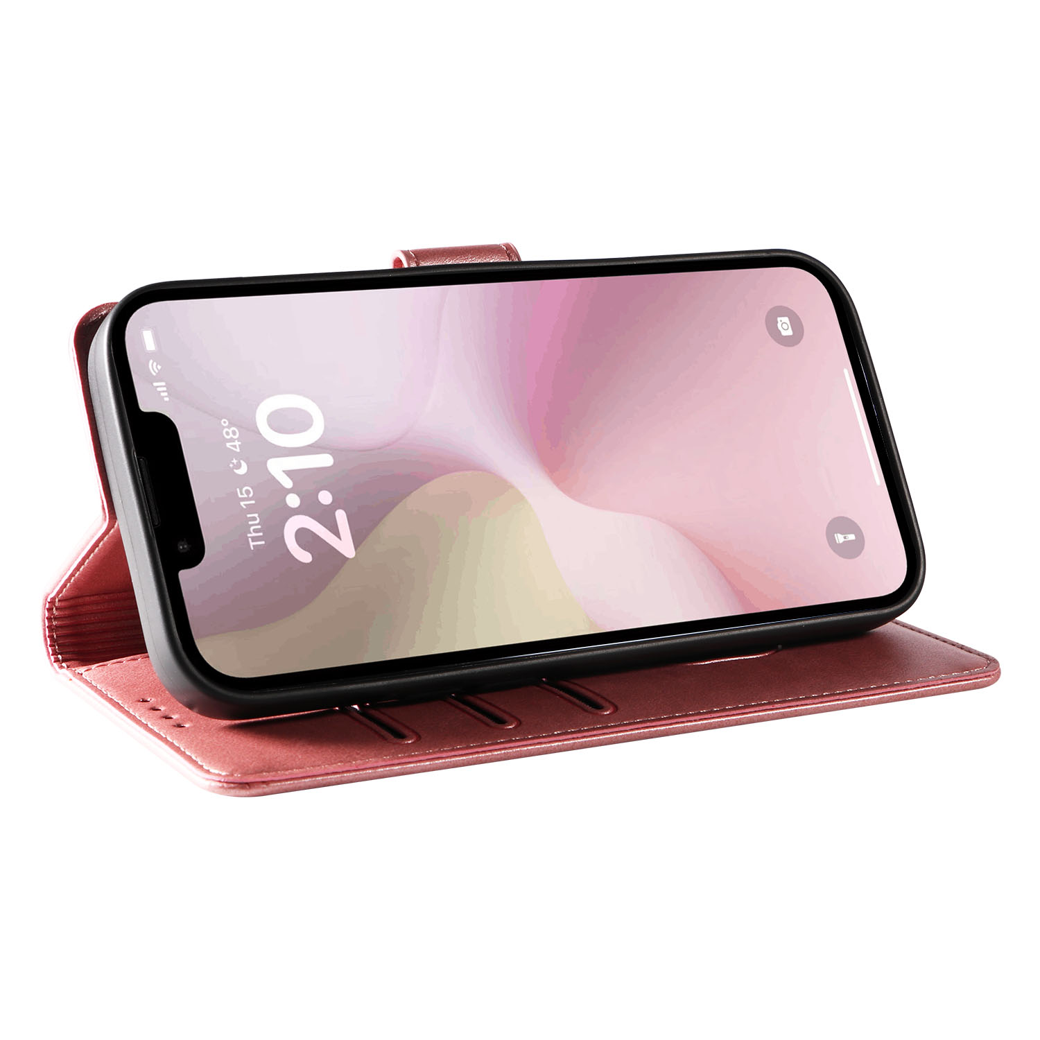 For iPhone 16e Case with 2Pcs Tempered Glass WANLONFENG WN Series Calf Texture Leather Phone Cover Big Cutouts - Pink $17.00