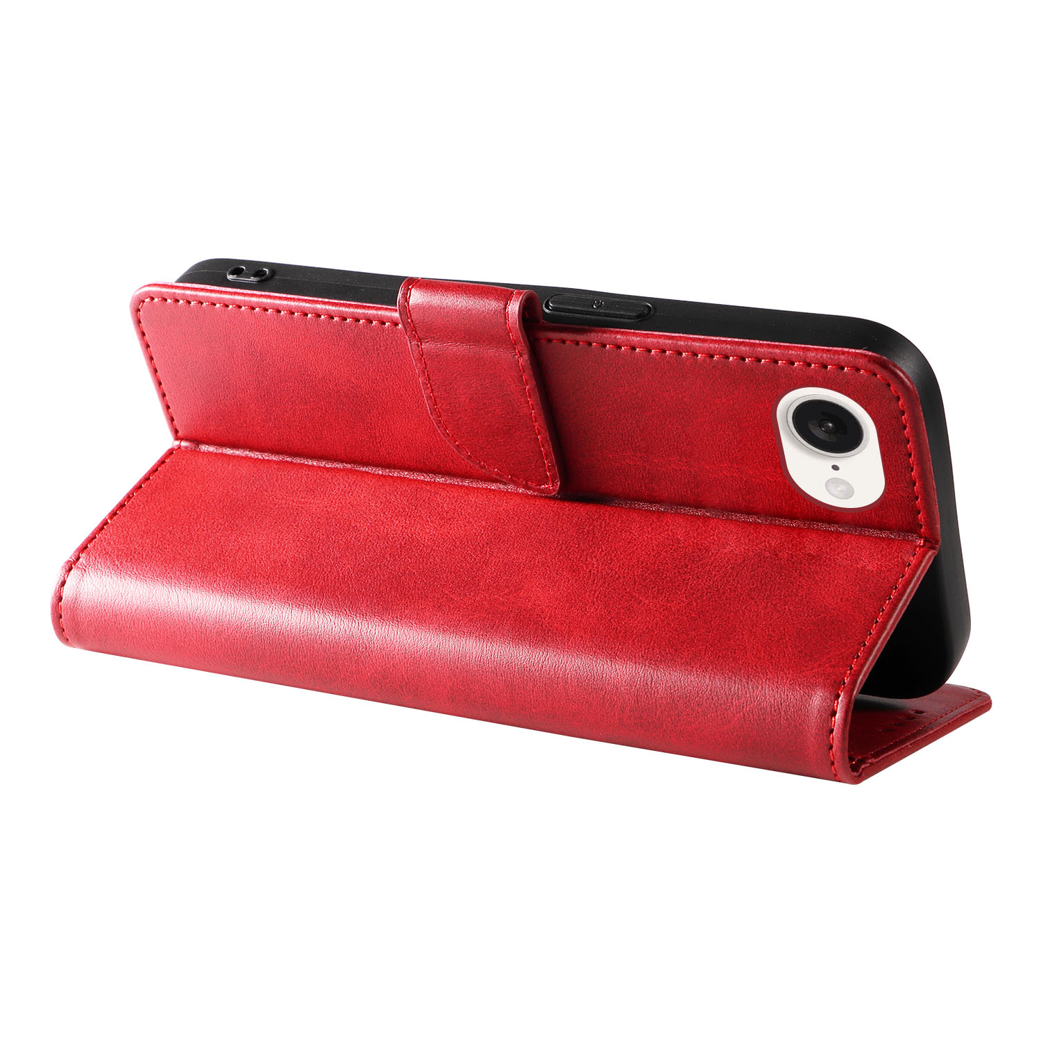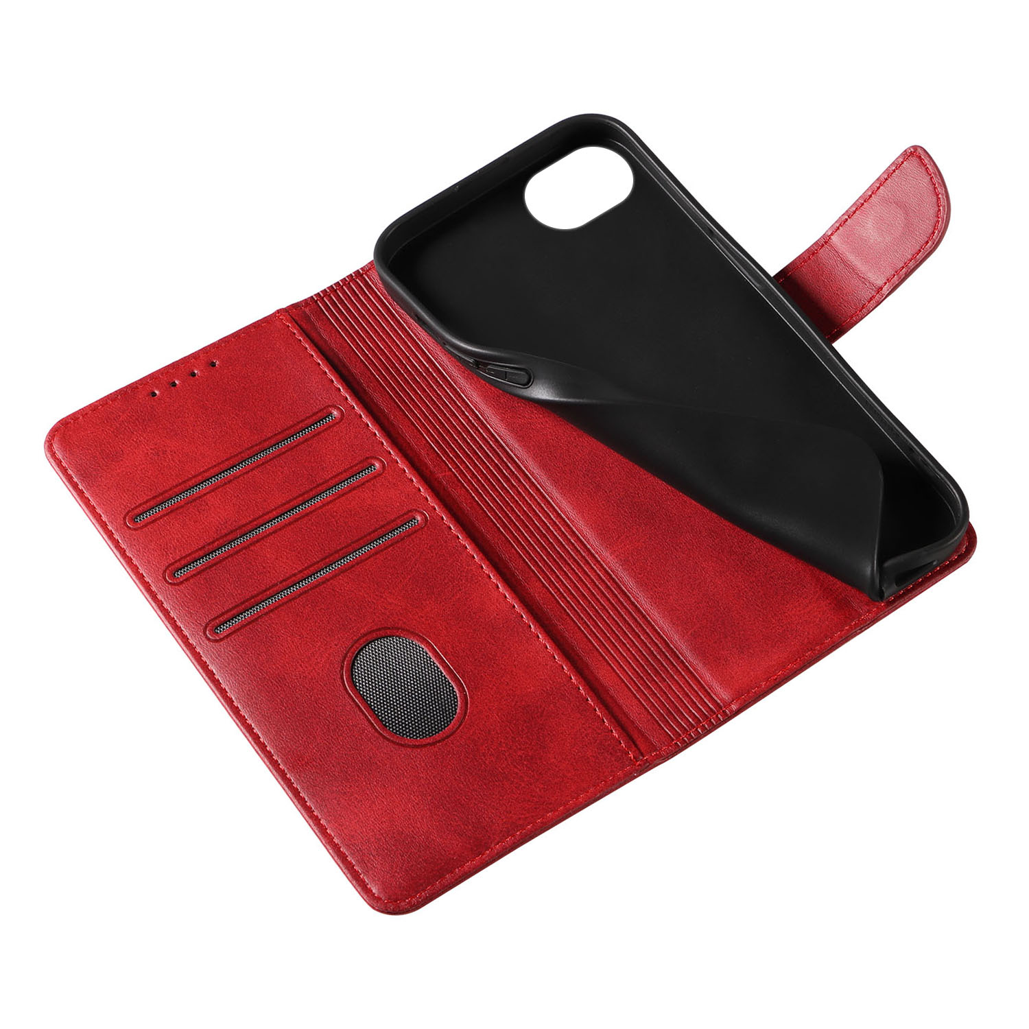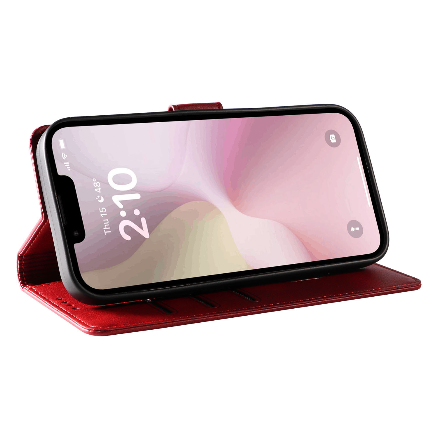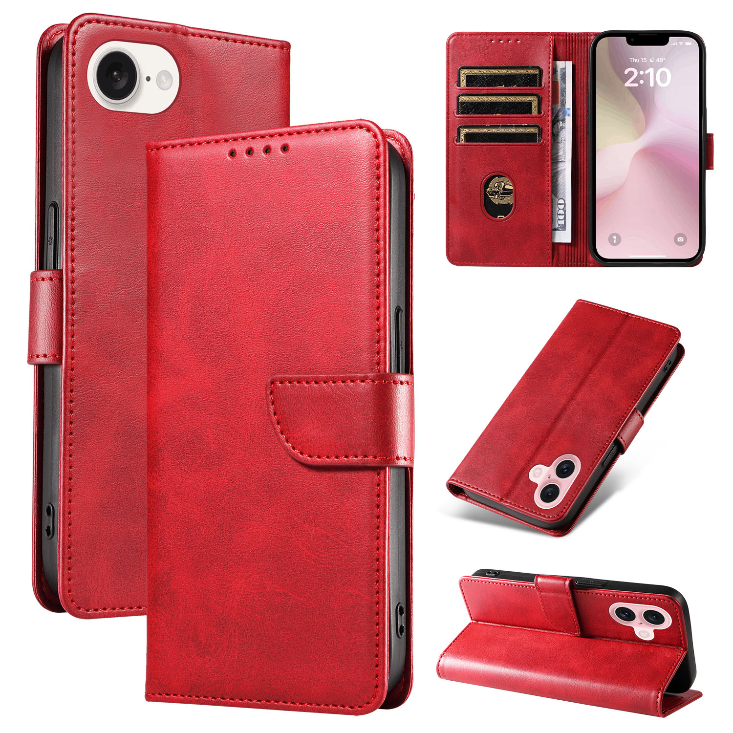 For iPhone 16e Case with 2Pcs Tempered Glass WANLONFENG WN Series Calf Texture Leather Phone Cover Big Cutouts - Red $17.00