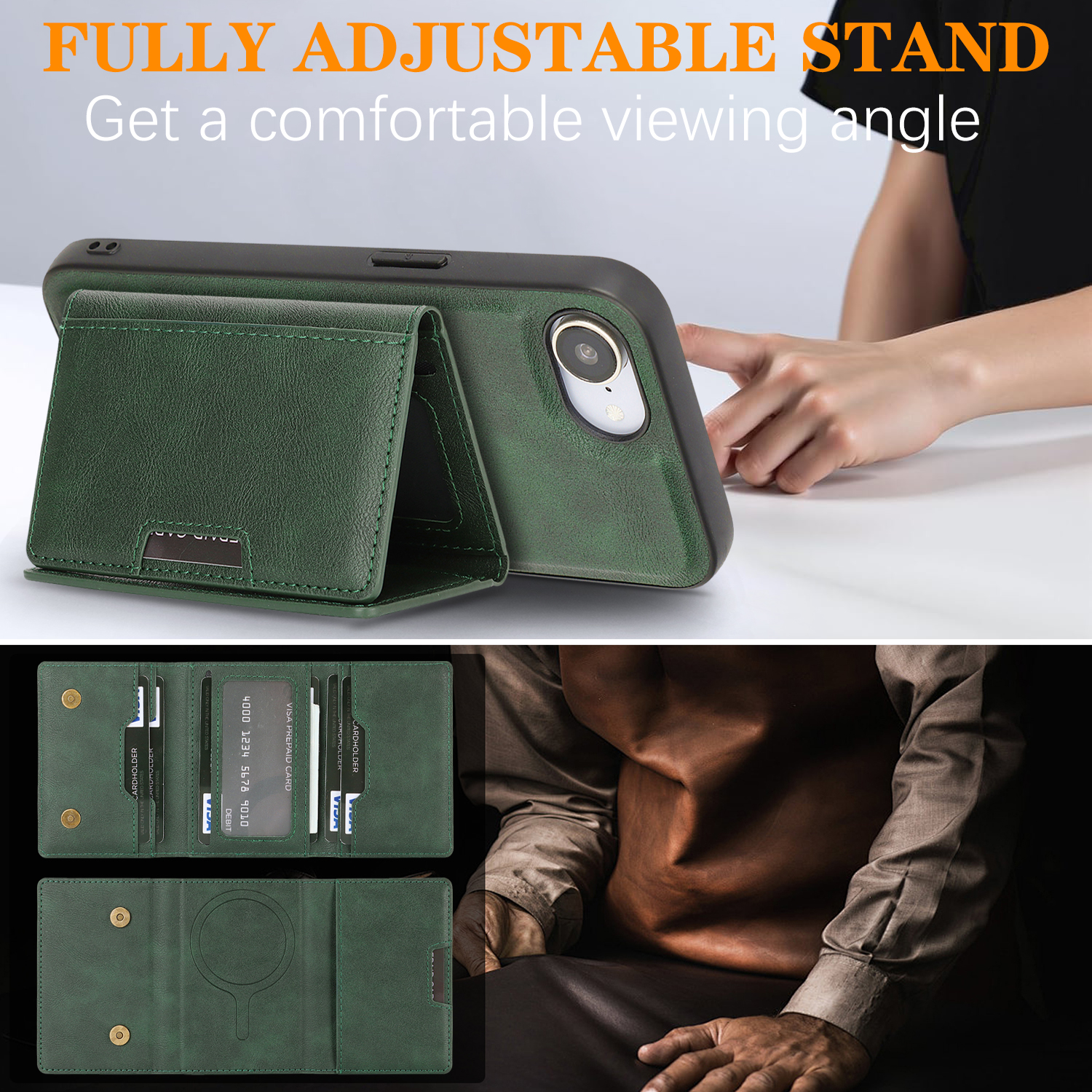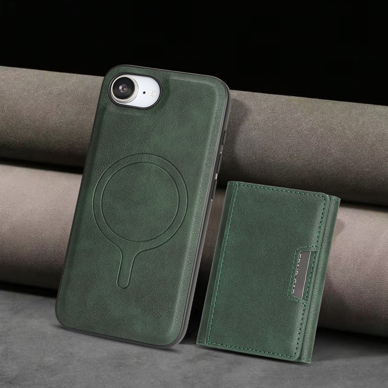 - MagSafe Compatible Supports for MagSafe accessories and wireless charging, featuring a minimalist magnetic leather bi-fold design with card holder functionality.