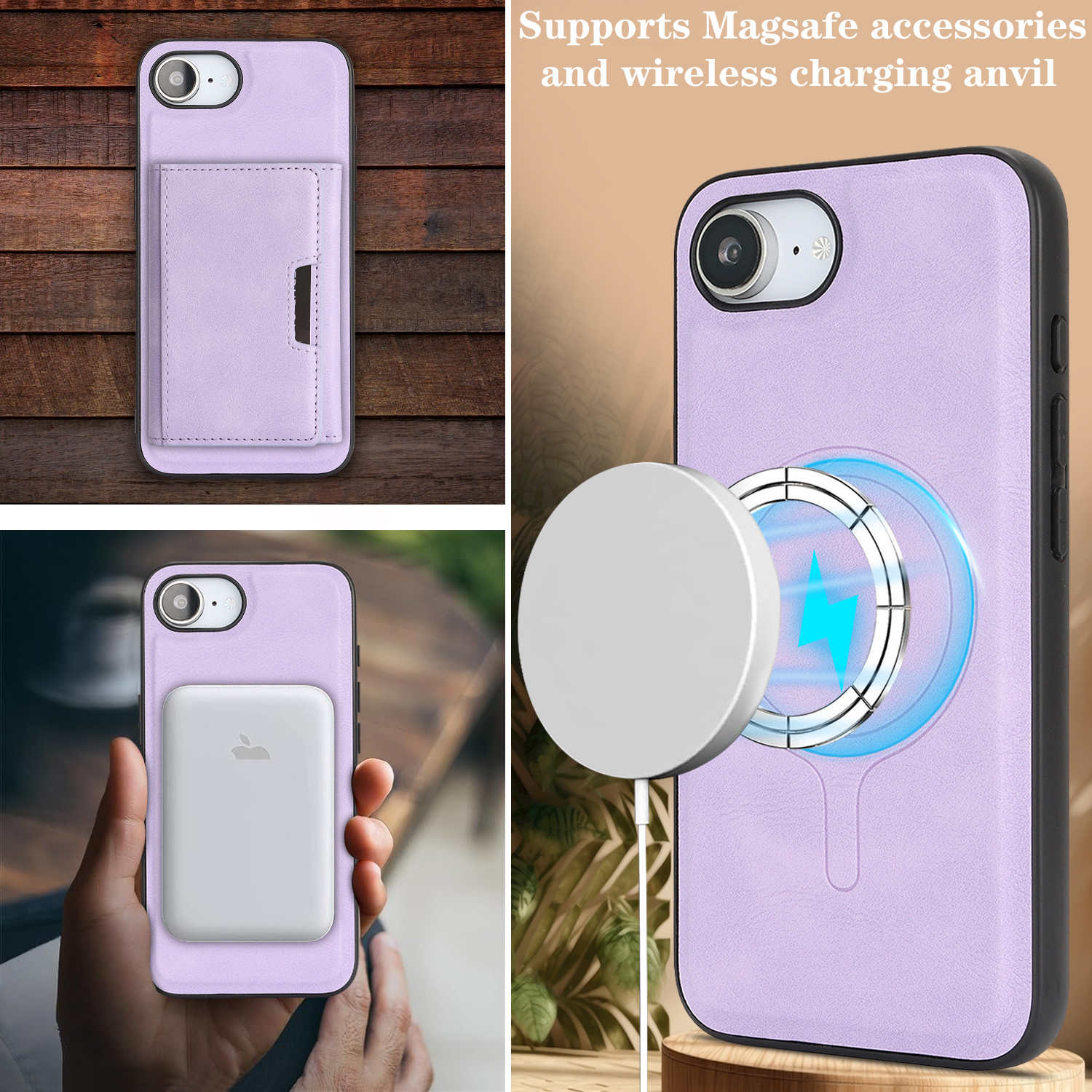 - MagSafe Compatible Supports for MagSafe accessories and wireless charging, featuring a minimalist magnetic leather bi-fold design with card holder functionality.
