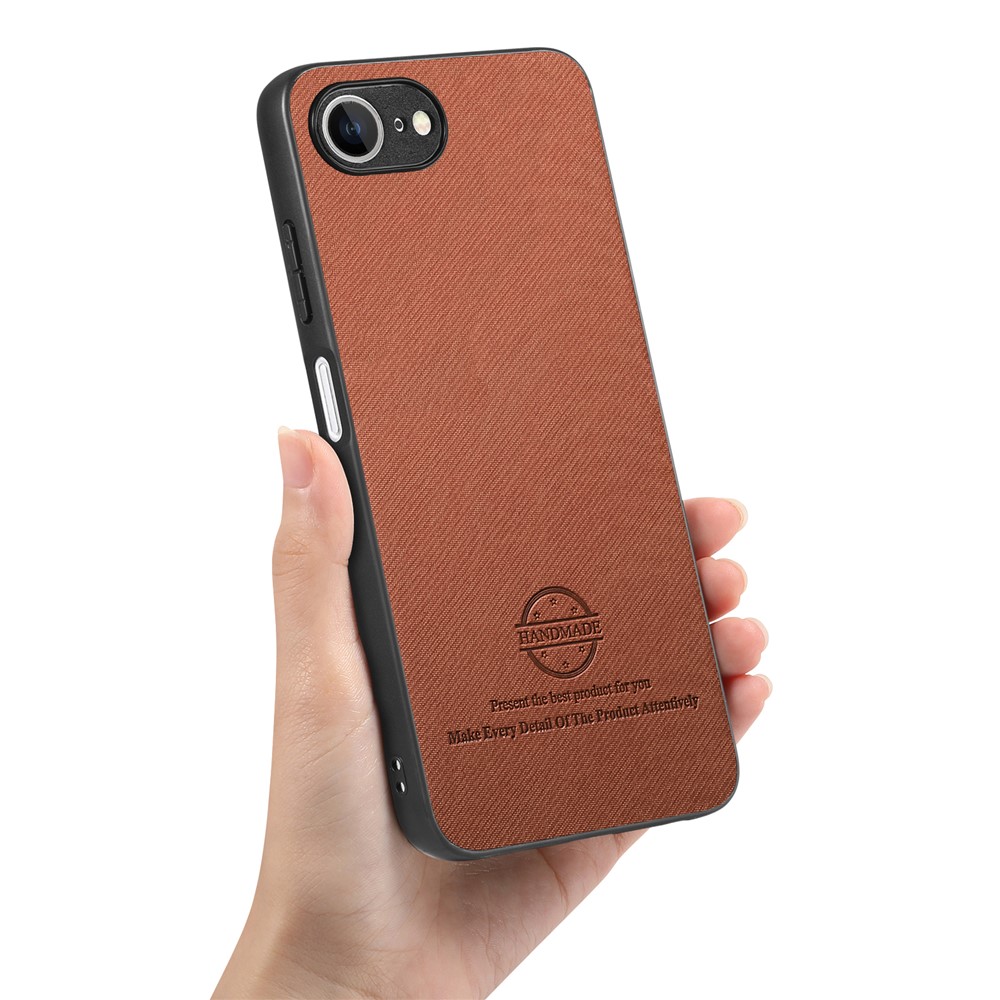 For iPhone 16e Leather Phone  Back Cover with Cloth Texture - Brown