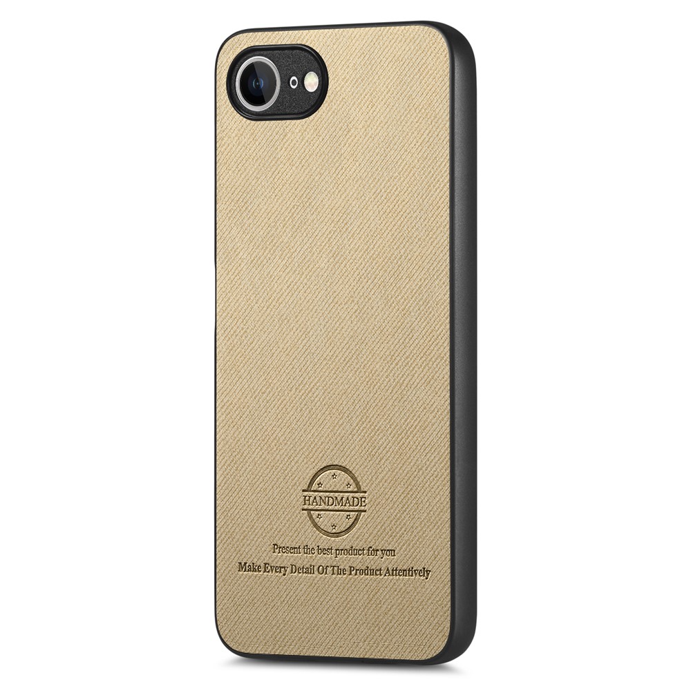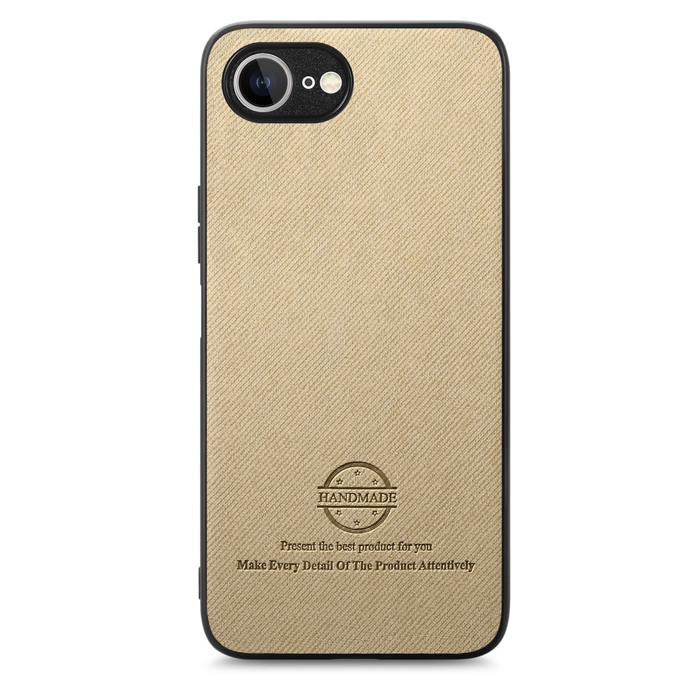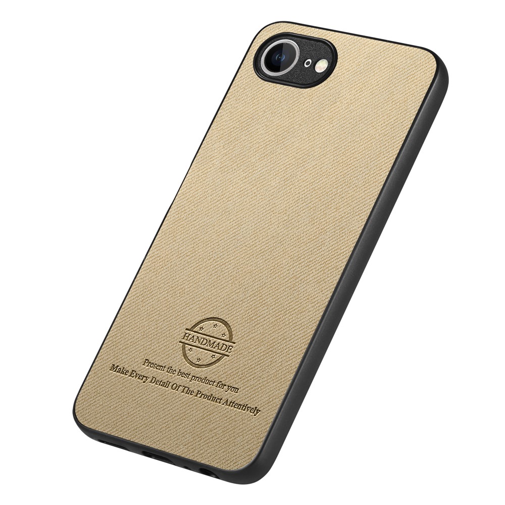 For iPhone 16e Leather Phone  Back Cover with Cloth Texture - Khaki