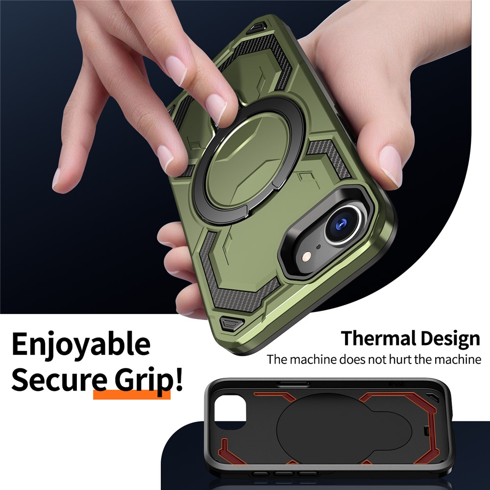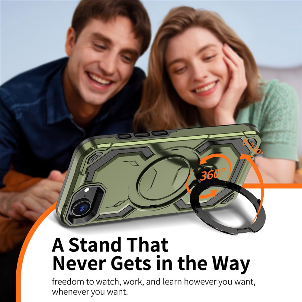 For iPhone 16e Magnetic Case Ring Kickstand PC + TPU Hybrid Phone Cover - Green $15.46