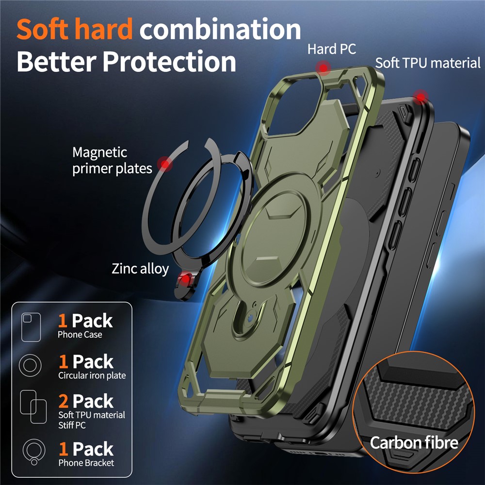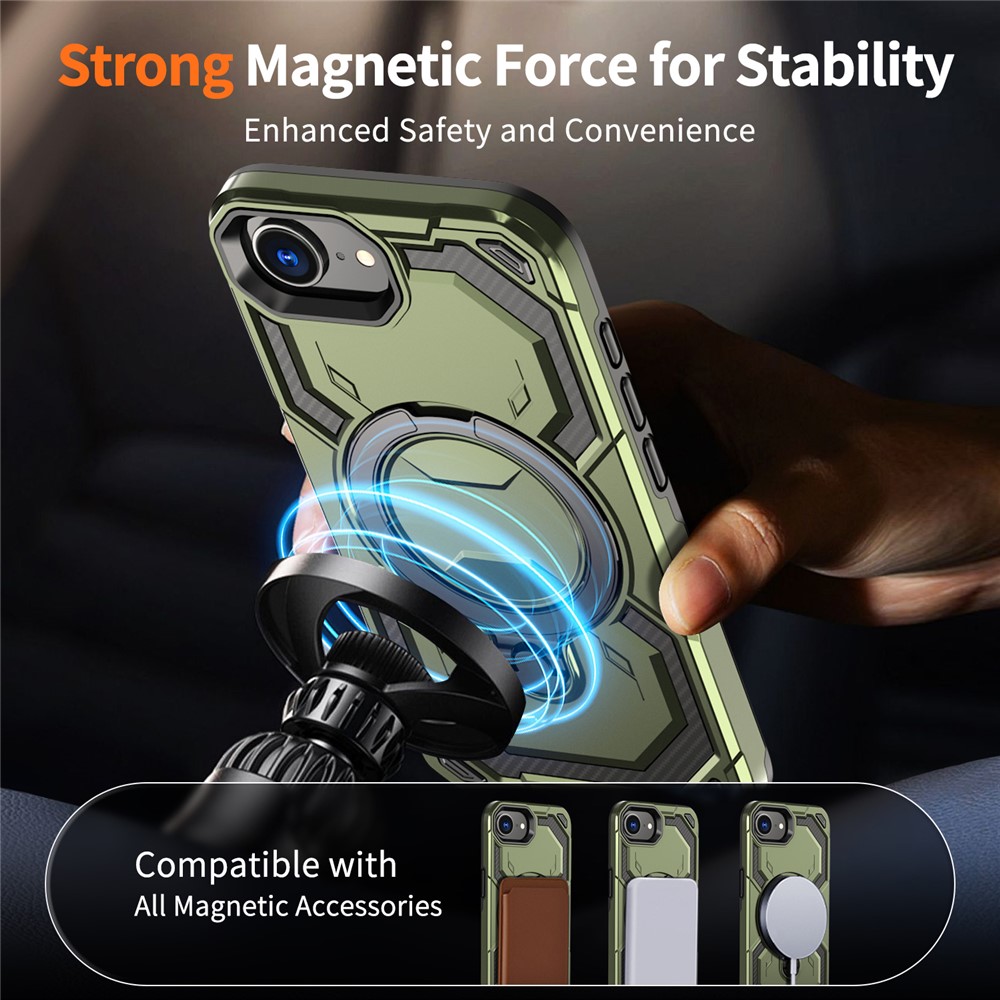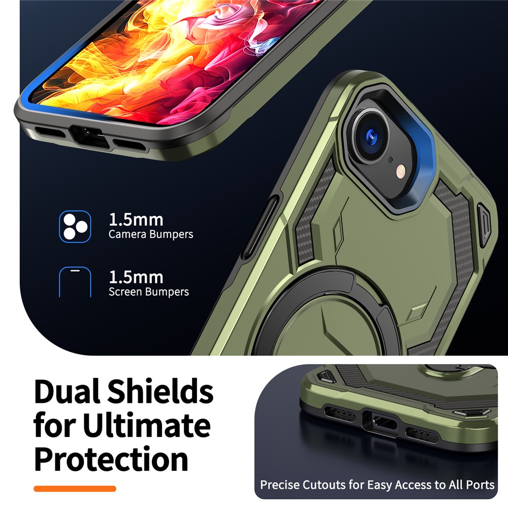 • Magnetic Ring Kickstand Features a magnetic ring kickstand for easy one-handed operation and doubles as a convenient phone kickstand for desktop or in-car use, enhancing versatility.