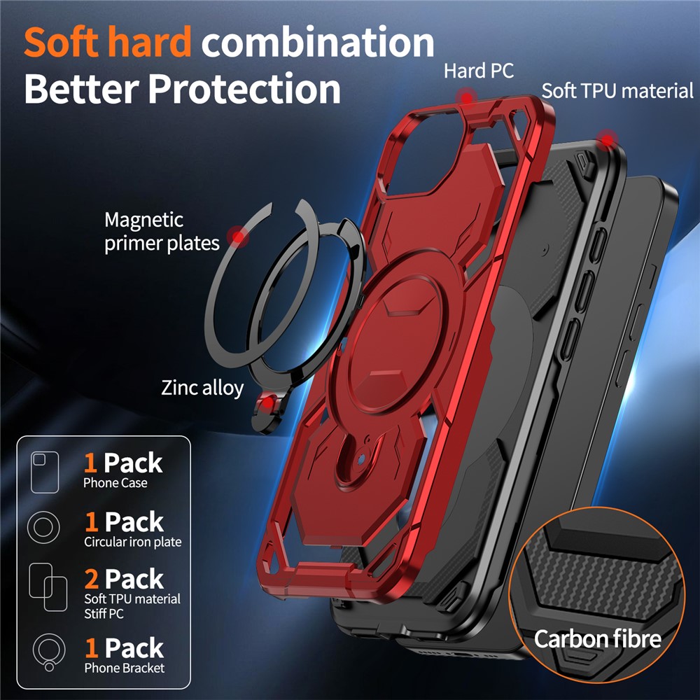 • Magnetic Ring Kickstand Features a magnetic ring kickstand for easy one-handed operation and doubles as a convenient phone kickstand for desktop or in-car use, enhancing versatility.