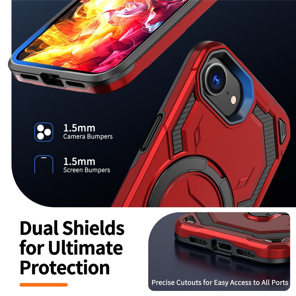 For iPhone 16e Magnetic Case Ring Kickstand PC + TPU Hybrid Phone Cover - Red $15.46