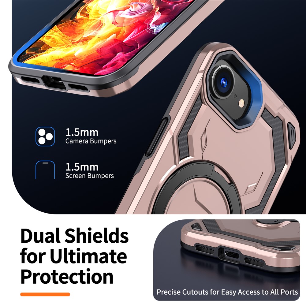 - Magnetic Ring Kickstand Features a magnetic ring kickstand for easy one-handed operation and doubles as a convenient phone kickstand for desktop or in-car use, enhancing versatility.