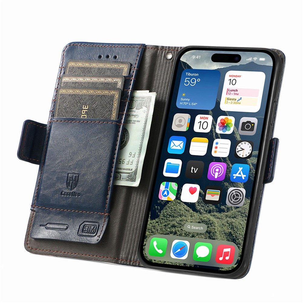 - Functional Wallet Features a wallet design with card slots and cash compartments, plus storage for a SIM card and ejector pin