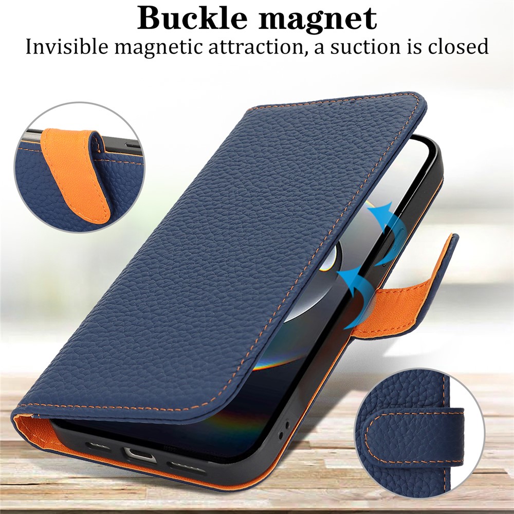 - Premium Material Combination Crafted with a litchi textured genuine cow leather exterior for a premium look and feel, paired with a flexible TPU inner shell that offers excellent shock absorption and long-lasting protection