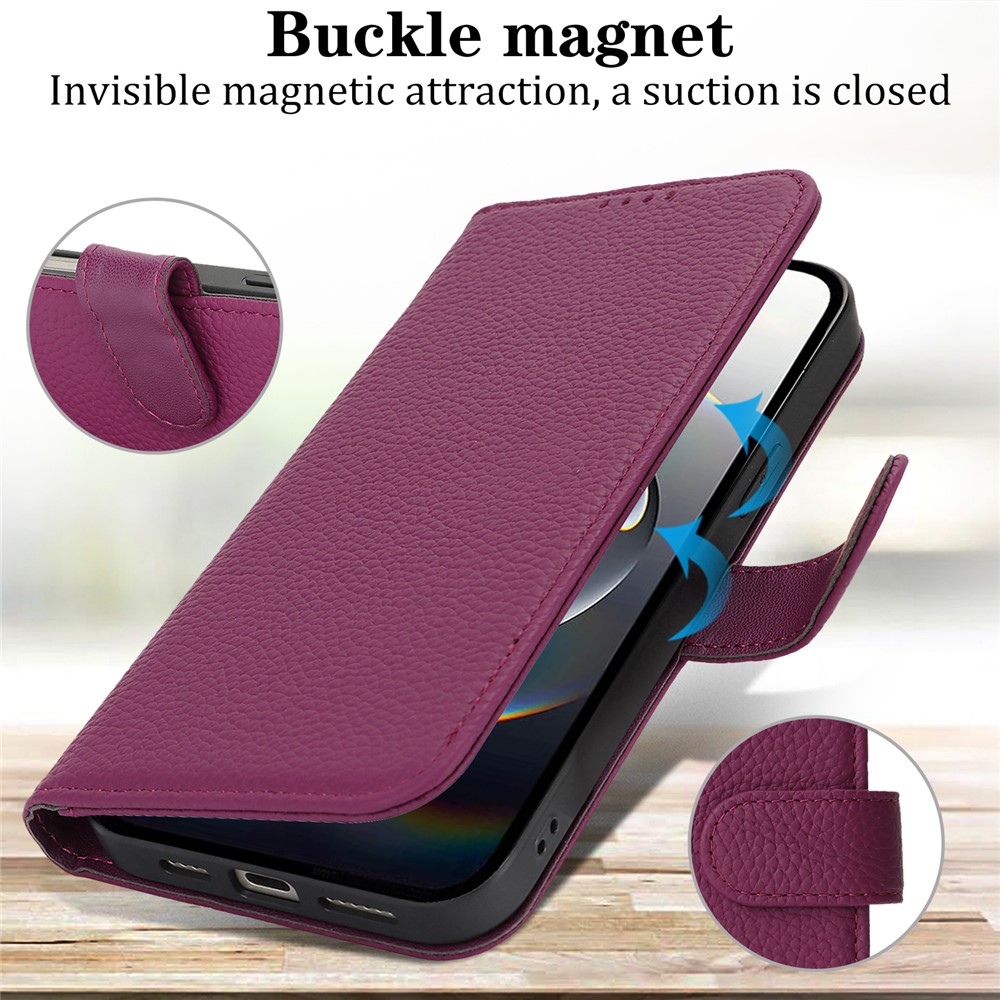 - Premium Material Combination Crafted with a litchi textured genuine cow leather exterior for a premium look and feel, paired with a flexible TPU inner shell that offers excellent shock absorption and long-lasting protection