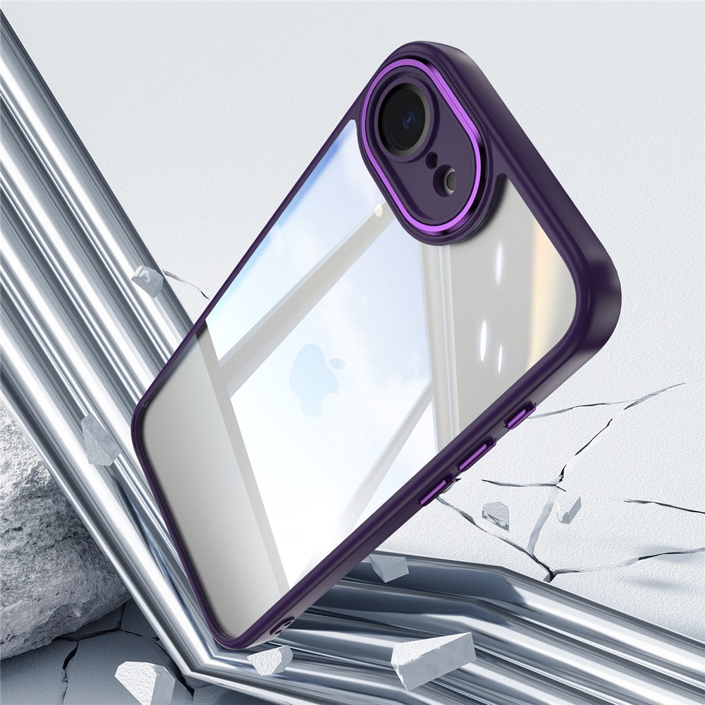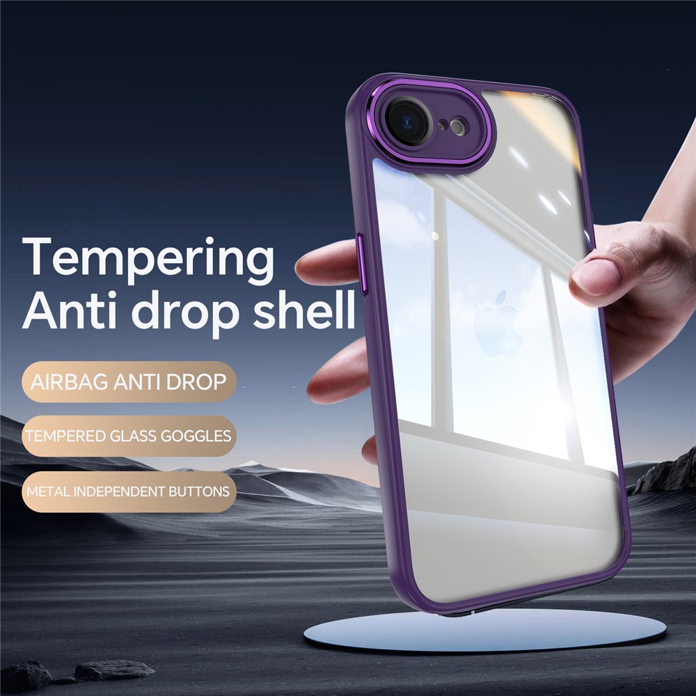 For iPhone 16e TPU Case WANLONFENG Drop-proof Clear Phone Cover with 2Pcs Tempered Glass Film - Dark Purple $16.57