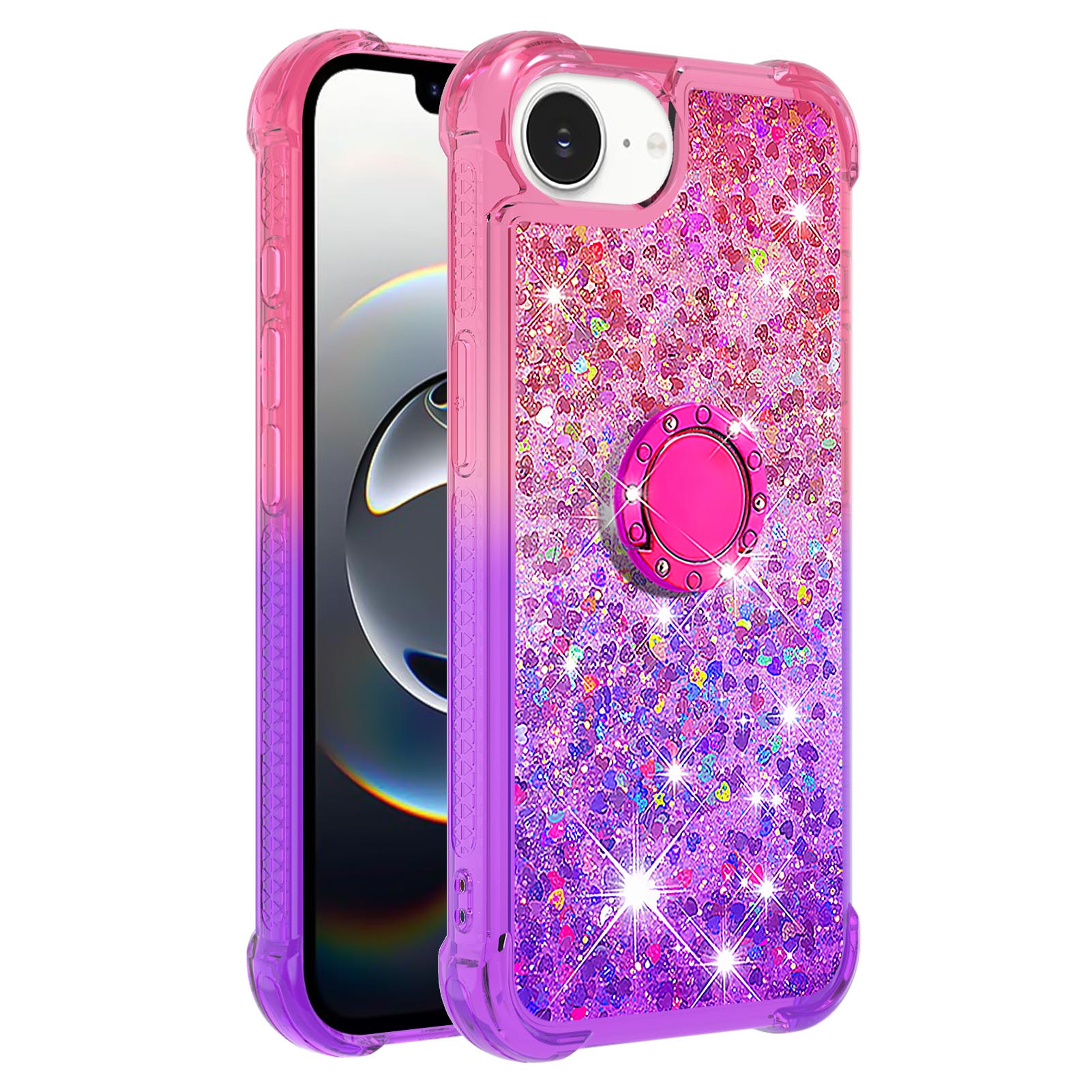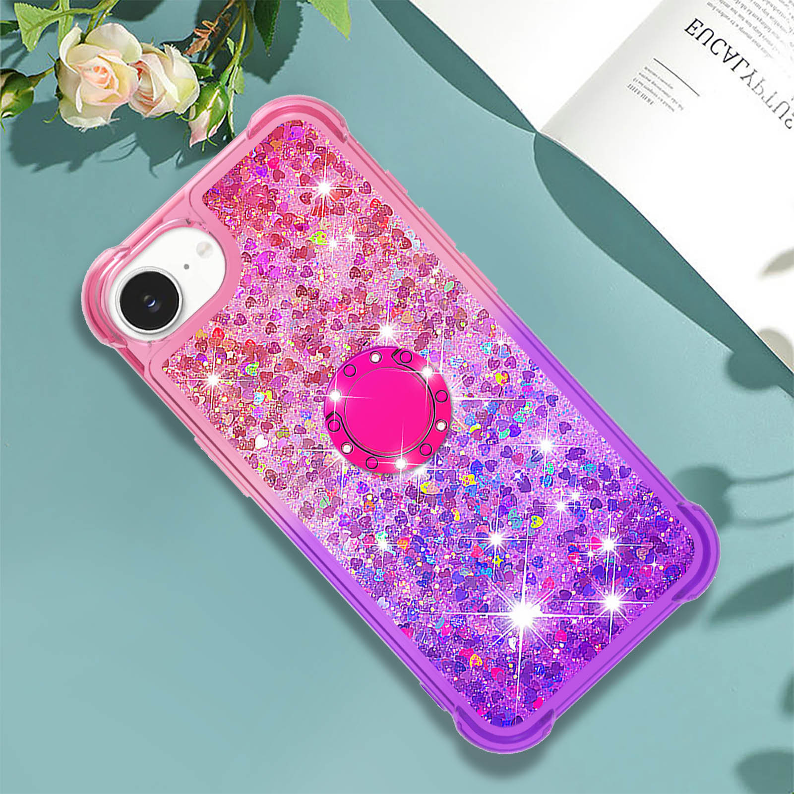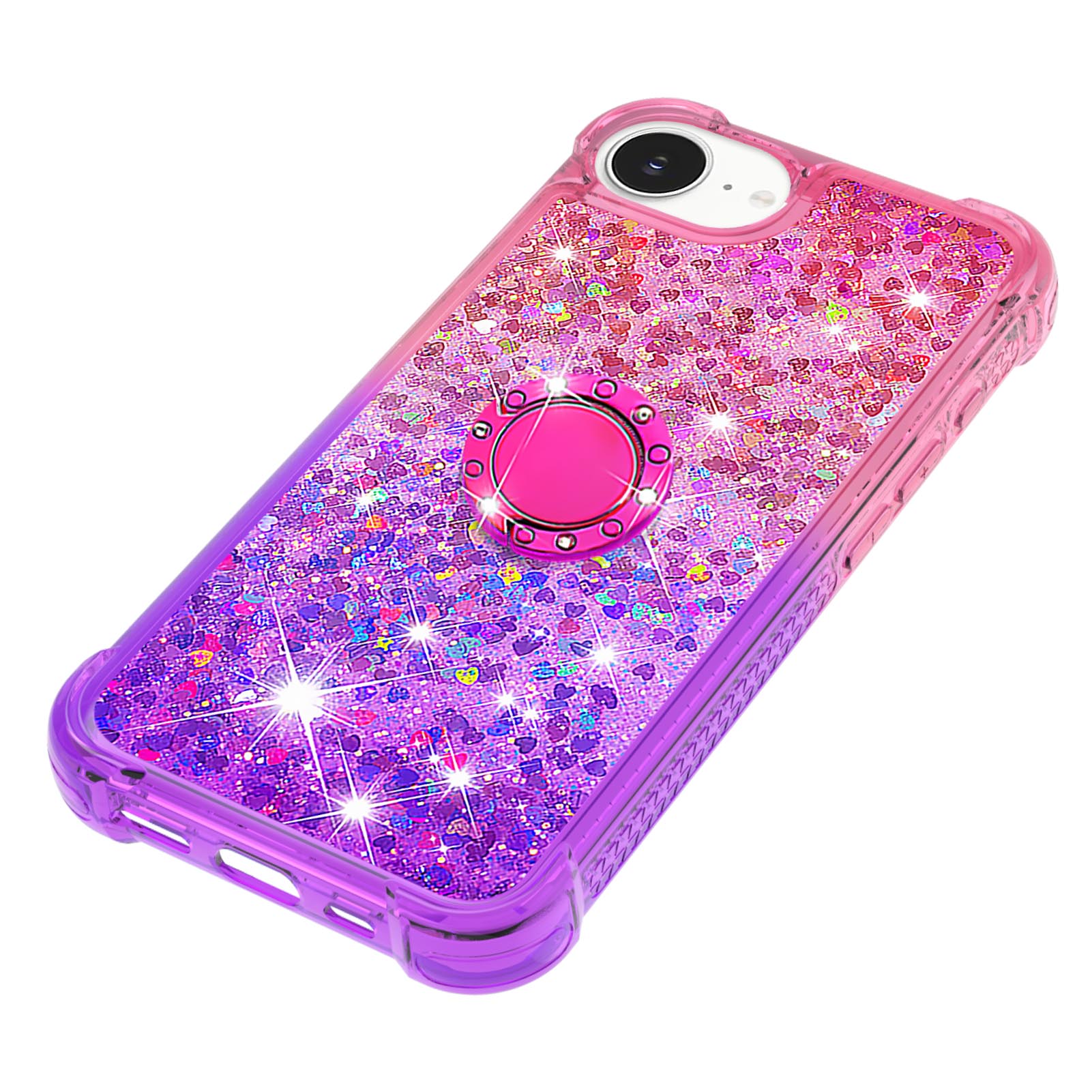 For iPhone 16e TPU Case with Kickstand Gradiant Quicksand Shockproof Cover - Pink+Purple $16.34