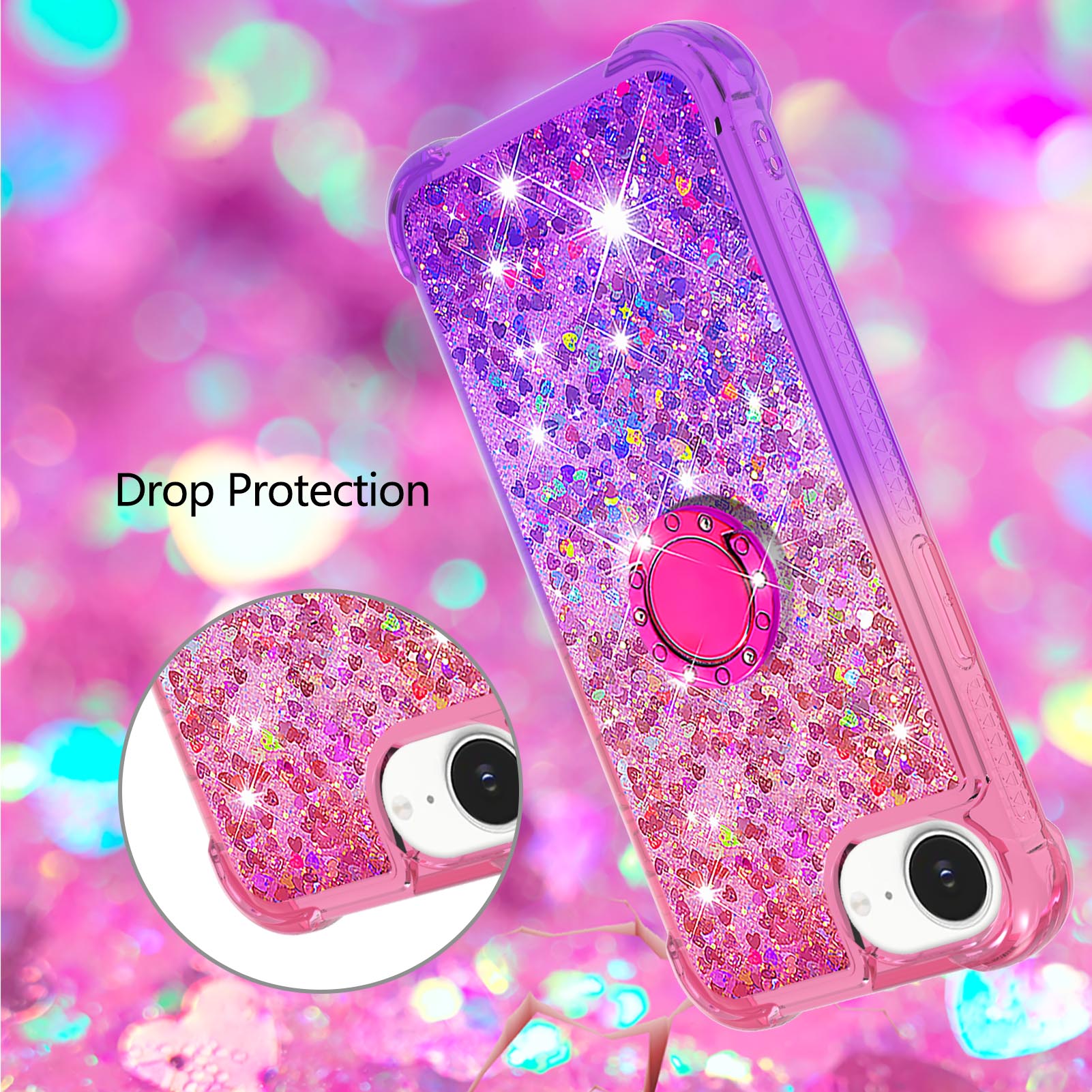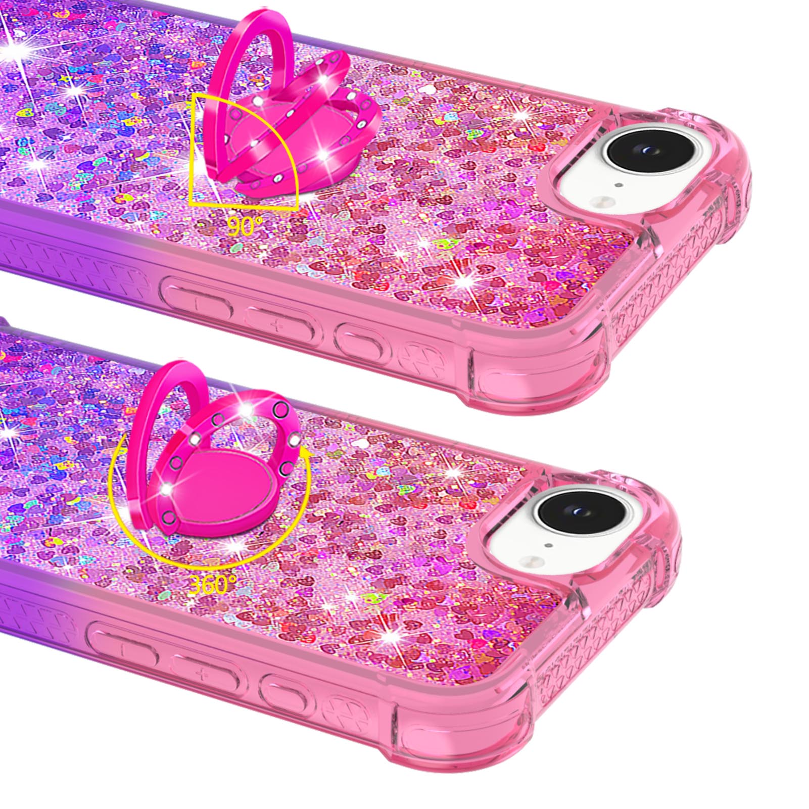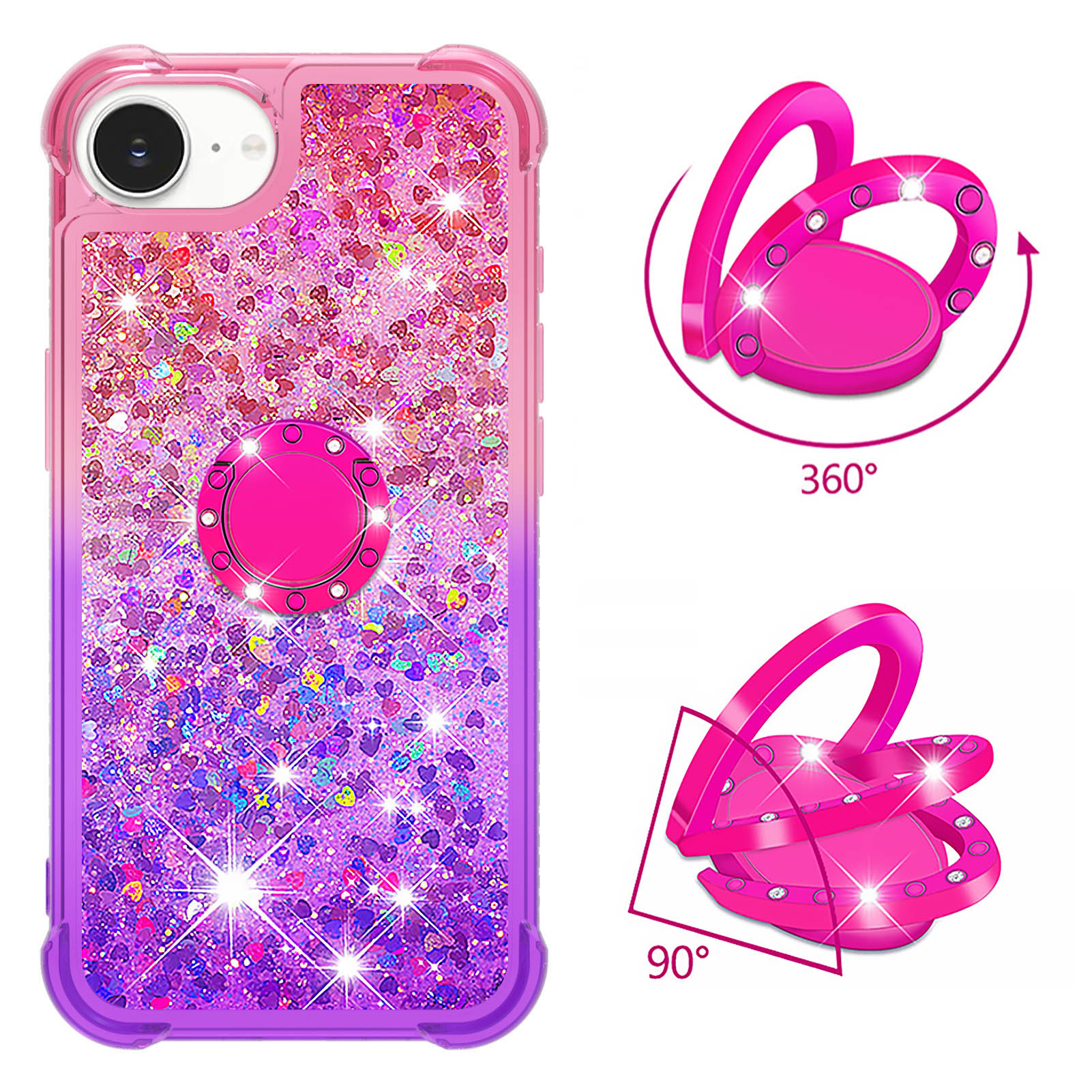 For iPhone 16e TPU Case with Kickstand Gradiant Quicksand Shockproof Cover - Pink+Purple $16.34