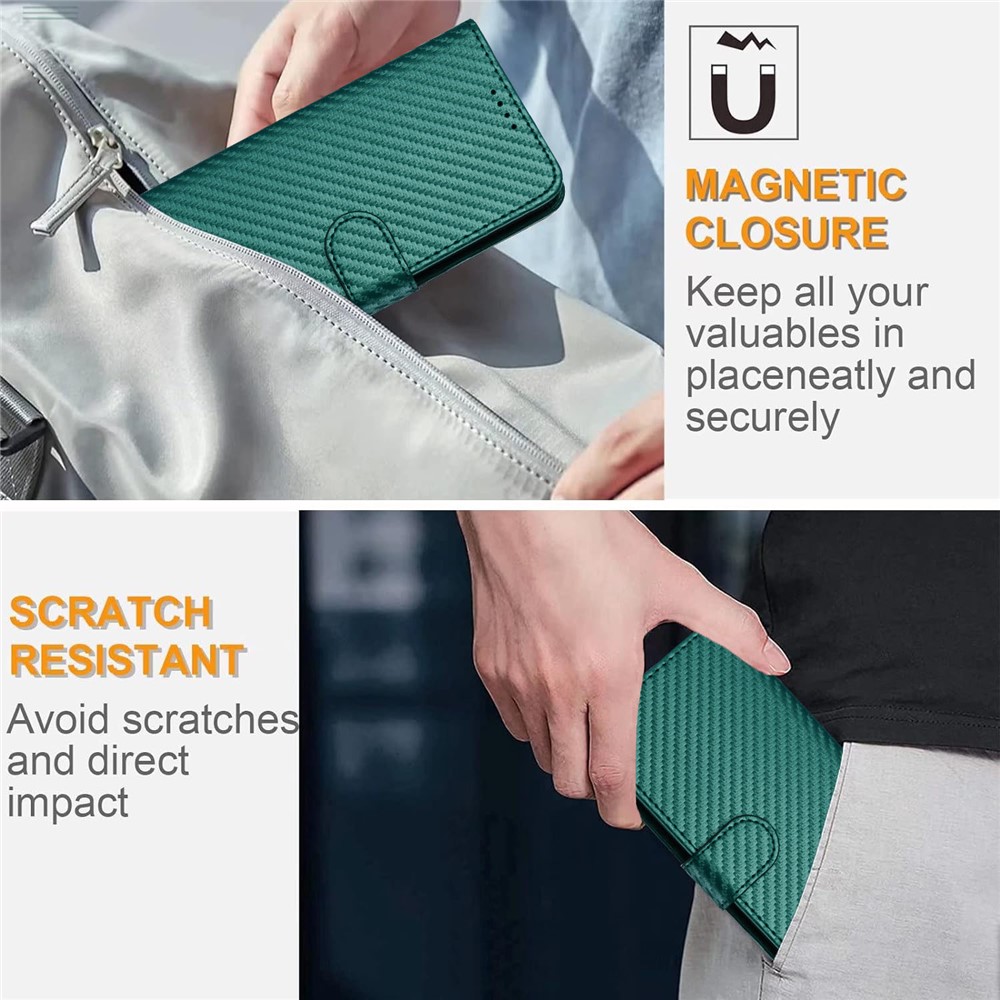 - Premium Carbon Fiber Texture Made of special carbon fiber texture PU leather and an inner TPU case, this phone cover is both stylish and durable, offering a lightweight and easy-to-install solution for everyday use.
