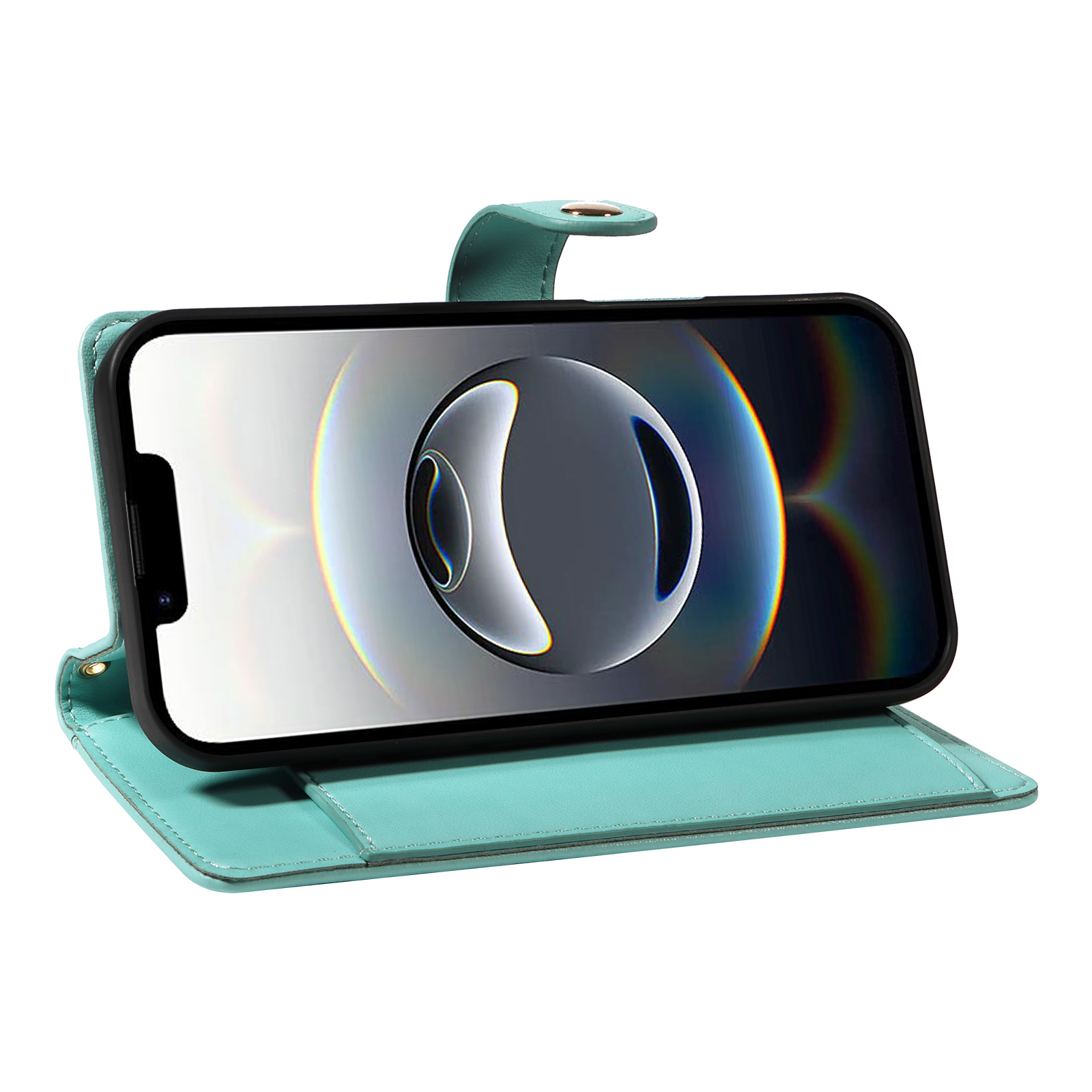 • For iPhone 16e Wallet Case with Straps, Rhombus Leather Stand Phone Cover - Blackish Green