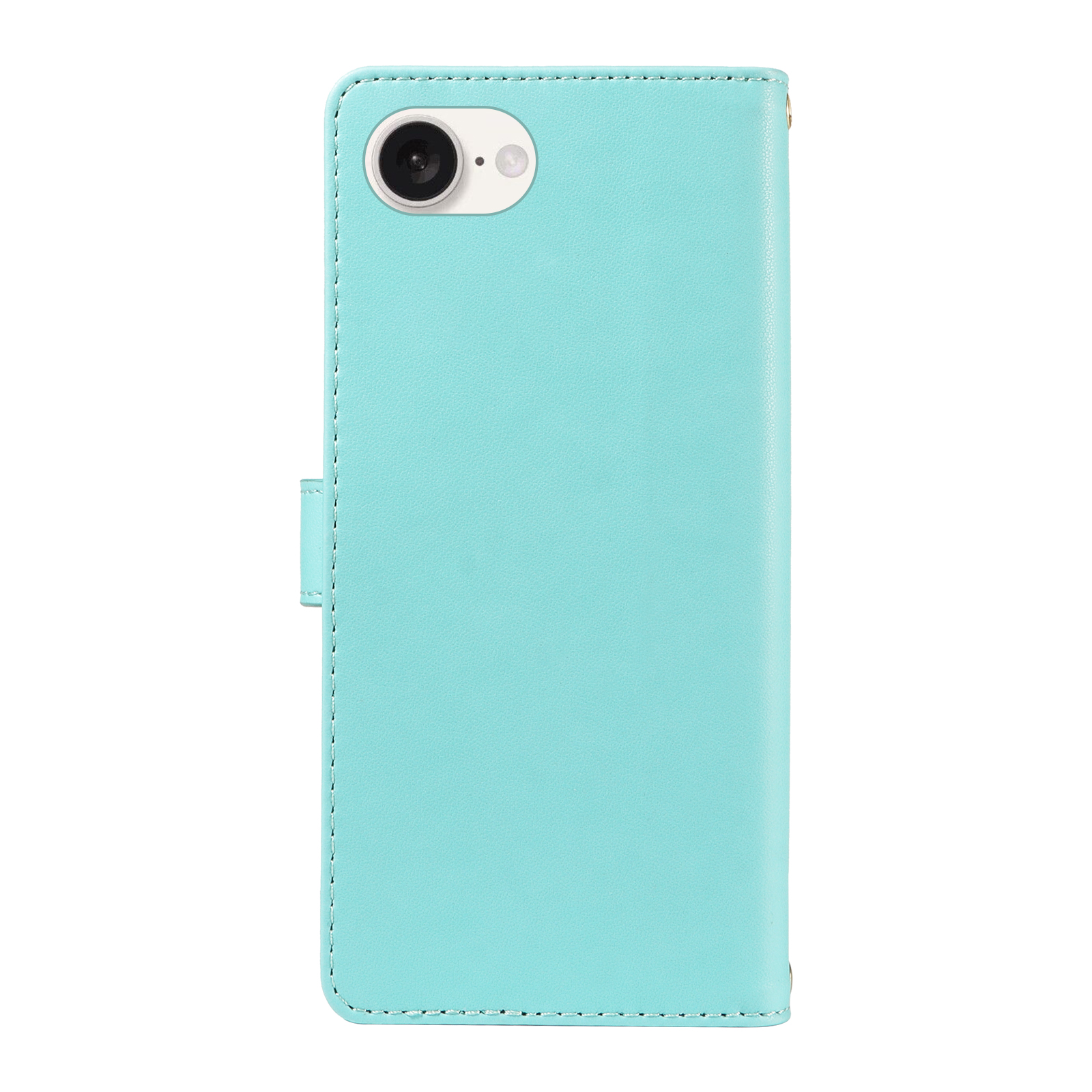 For iPhone 16e Wallet Case with Straps, Rhombus Leather Stand Phone Cover – Light Green