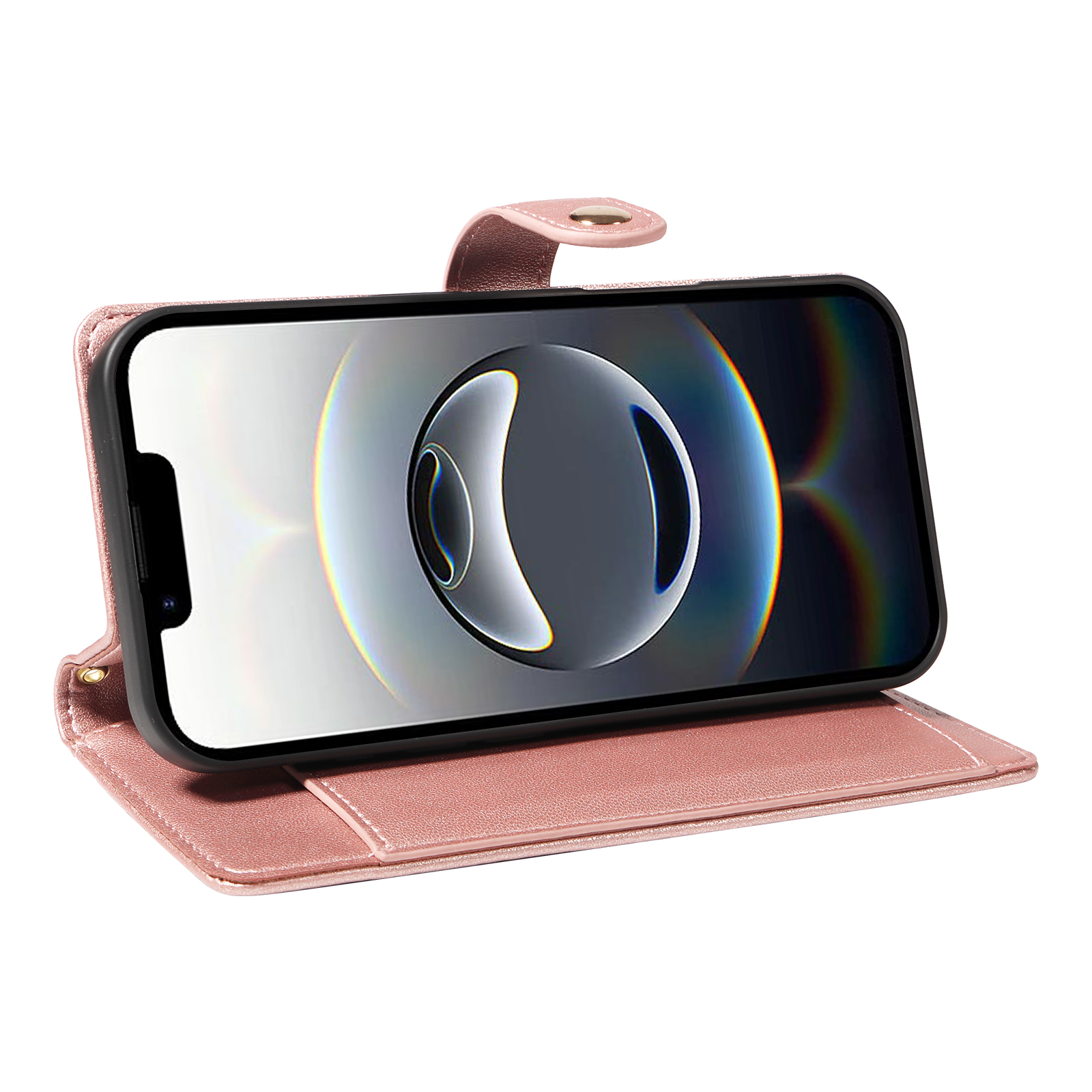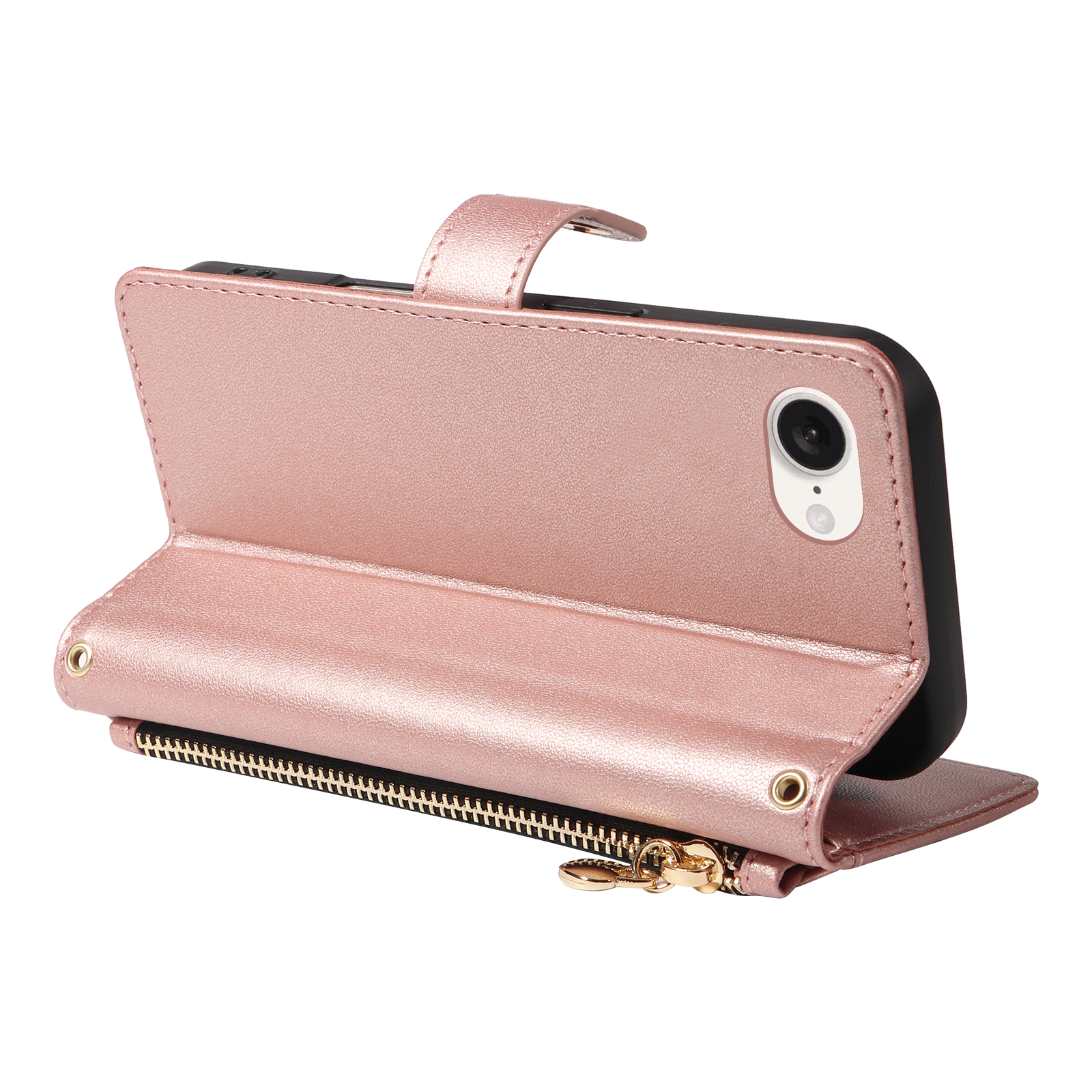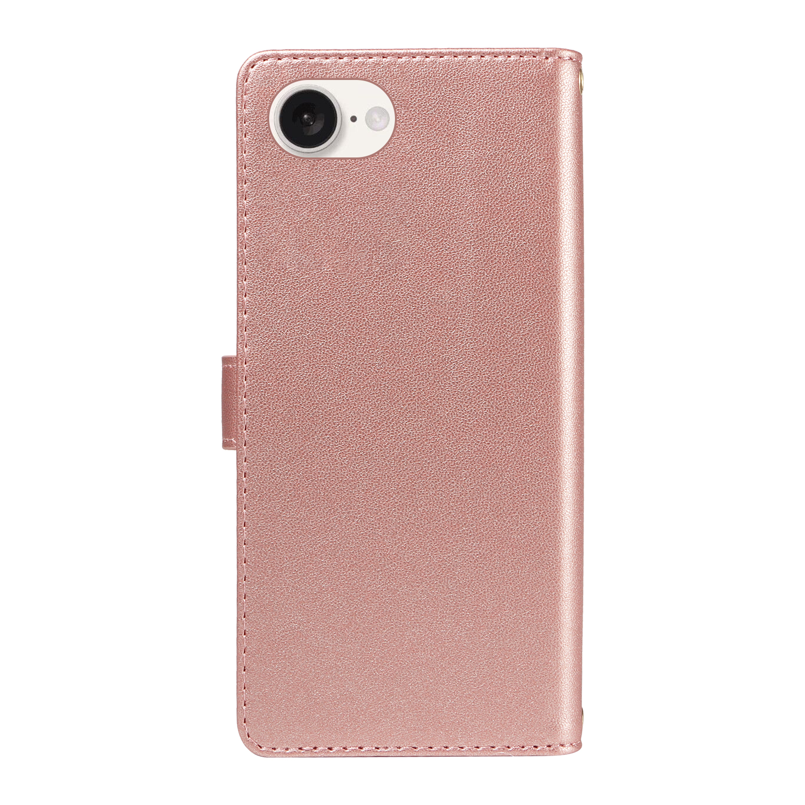 For iPhone 16e Wallet Case with Straps, Rhombus Leather Stand Phone Cover – Rose Gold