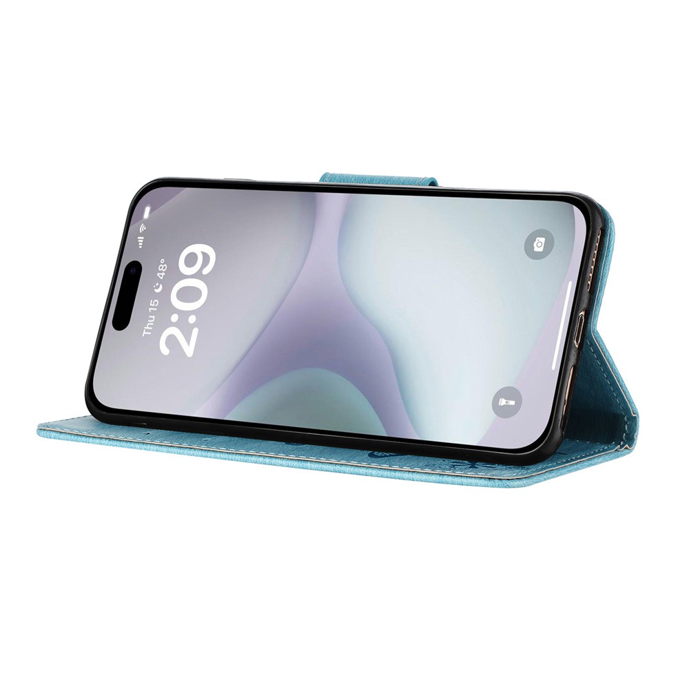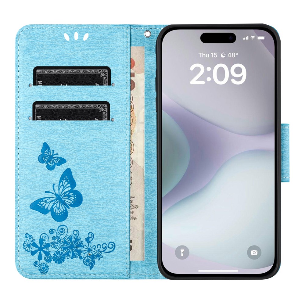 For iPhone 17 Case Butterflies Flower Leather Wallet Flip Phone Cover – Blue