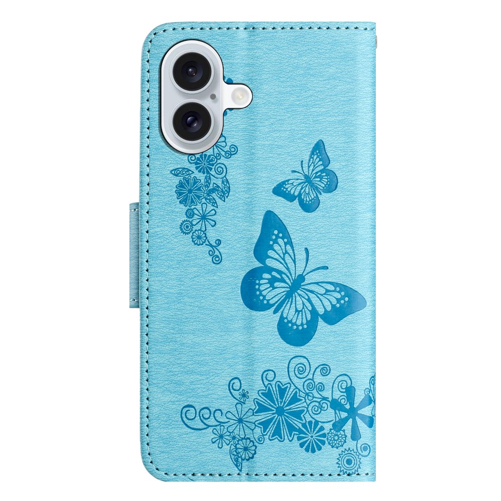 For iPhone 17 Case Butterflies Flower Leather Wallet Flip Phone Cover - Blue