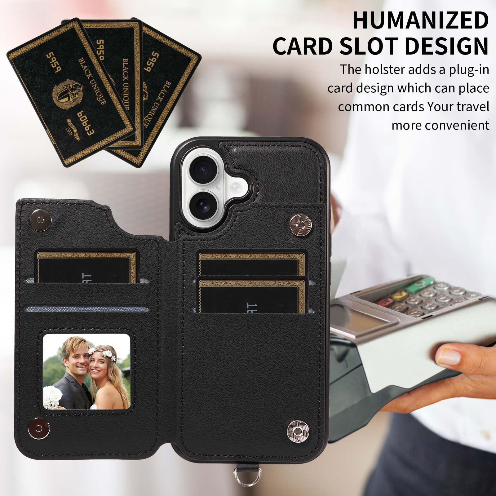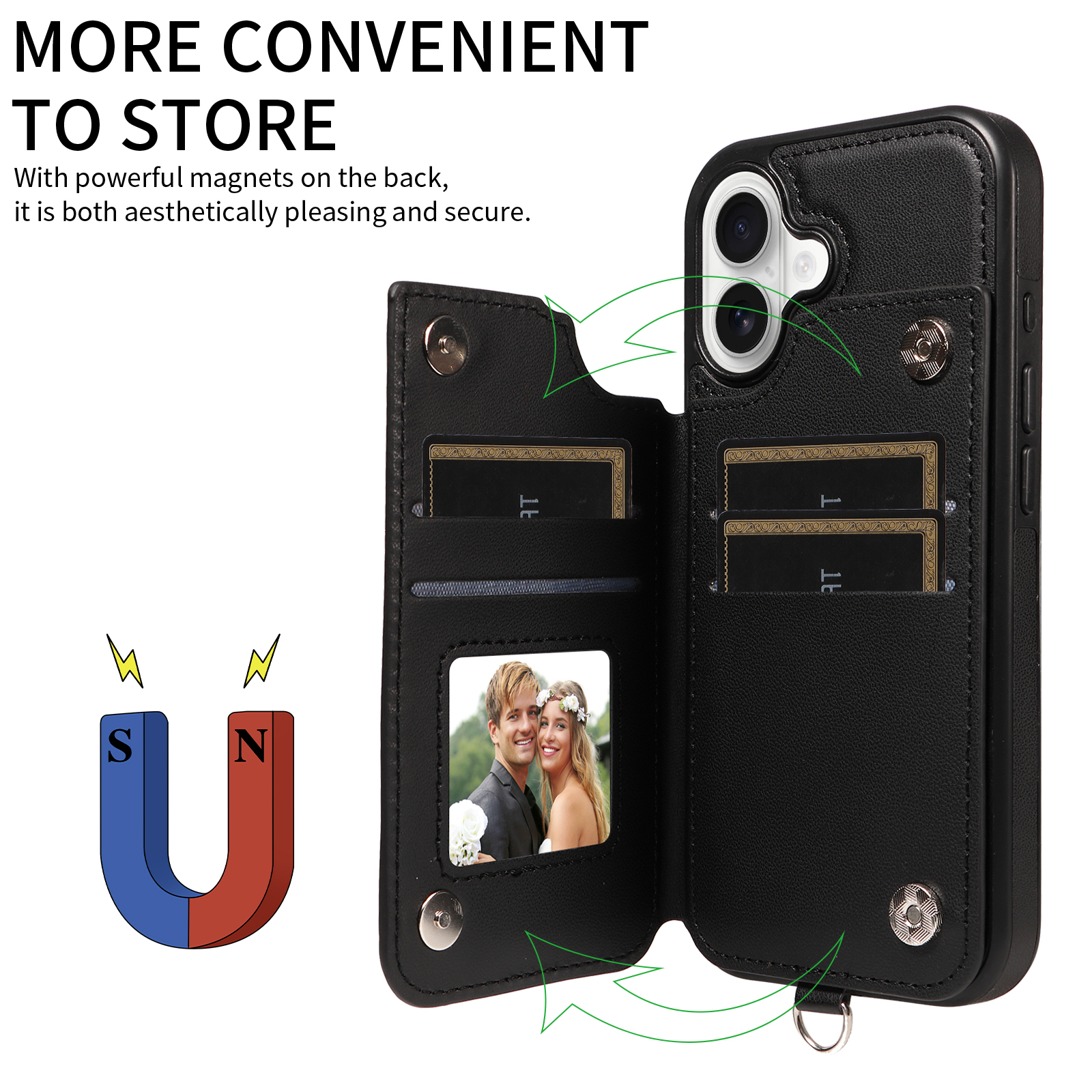 - Secure Magnetic Closure & Sturdy Ring Buckle Equipped with magnetic buttons for reliable closure and a robust ring buckle, the case ensures your phone and cards stay safe while providing a firmer, more comfortable grip.
