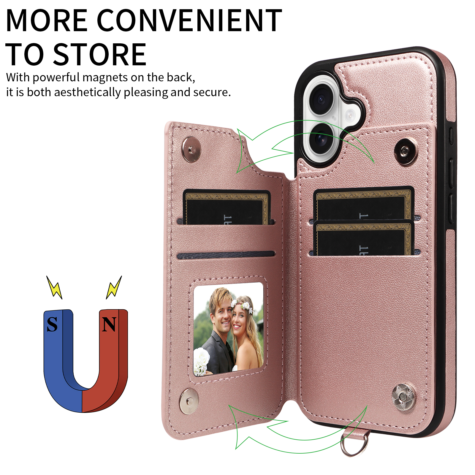 - Secure Magnetic Closure & Sturdy Ring Buckle Equipped with magnetic buttons for reliable closure and a robust ring buckle, the case ensures your phone and cards stay safe while providing a firmer, more comfortable grip.