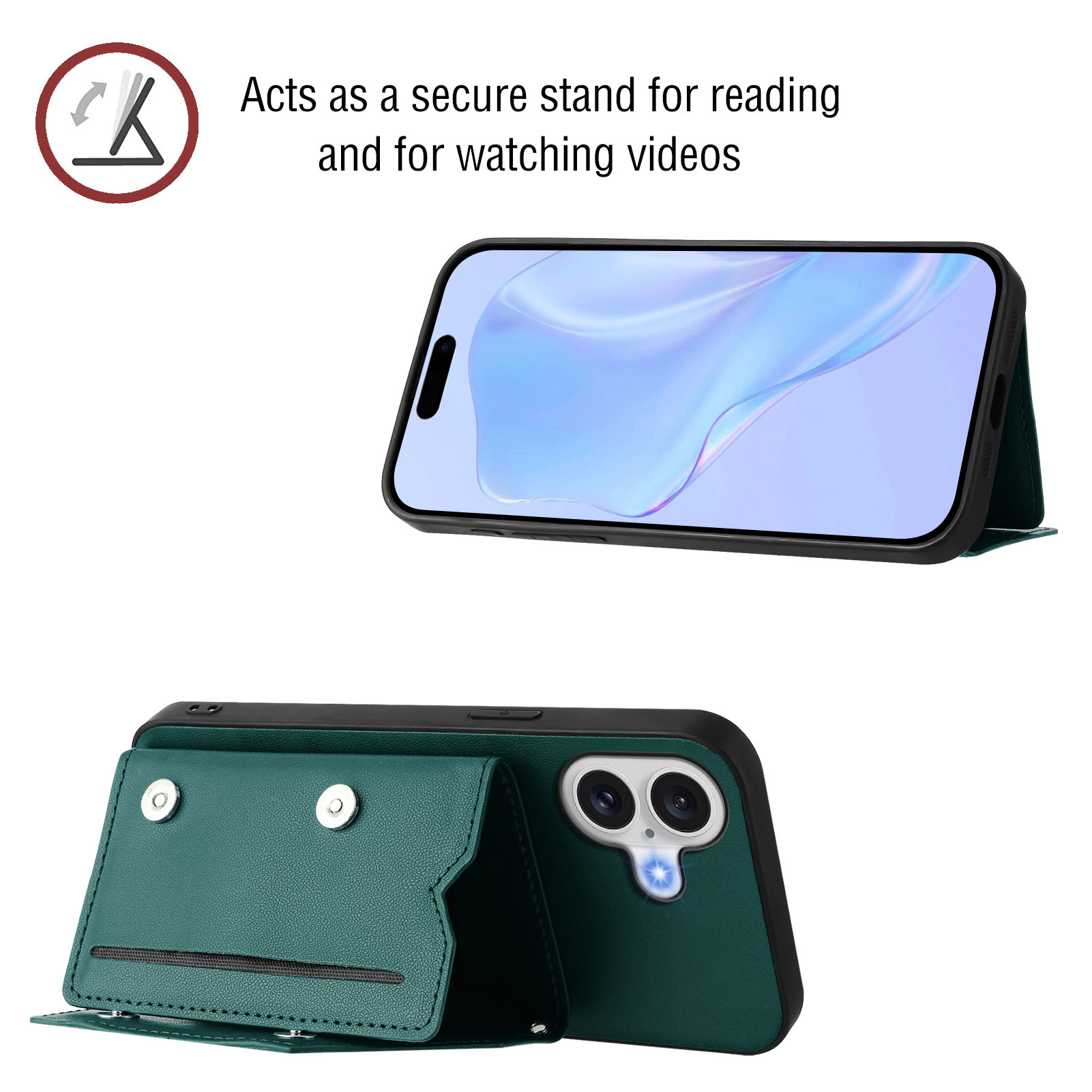 - Kickstand Functionality The card holder doubles as a convenient kickstand, making it easy to prop your phone up for hands-free viewing and enhanced usability
