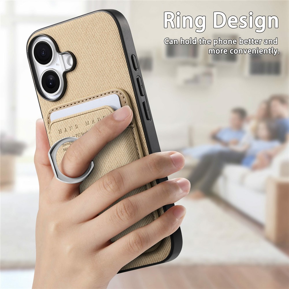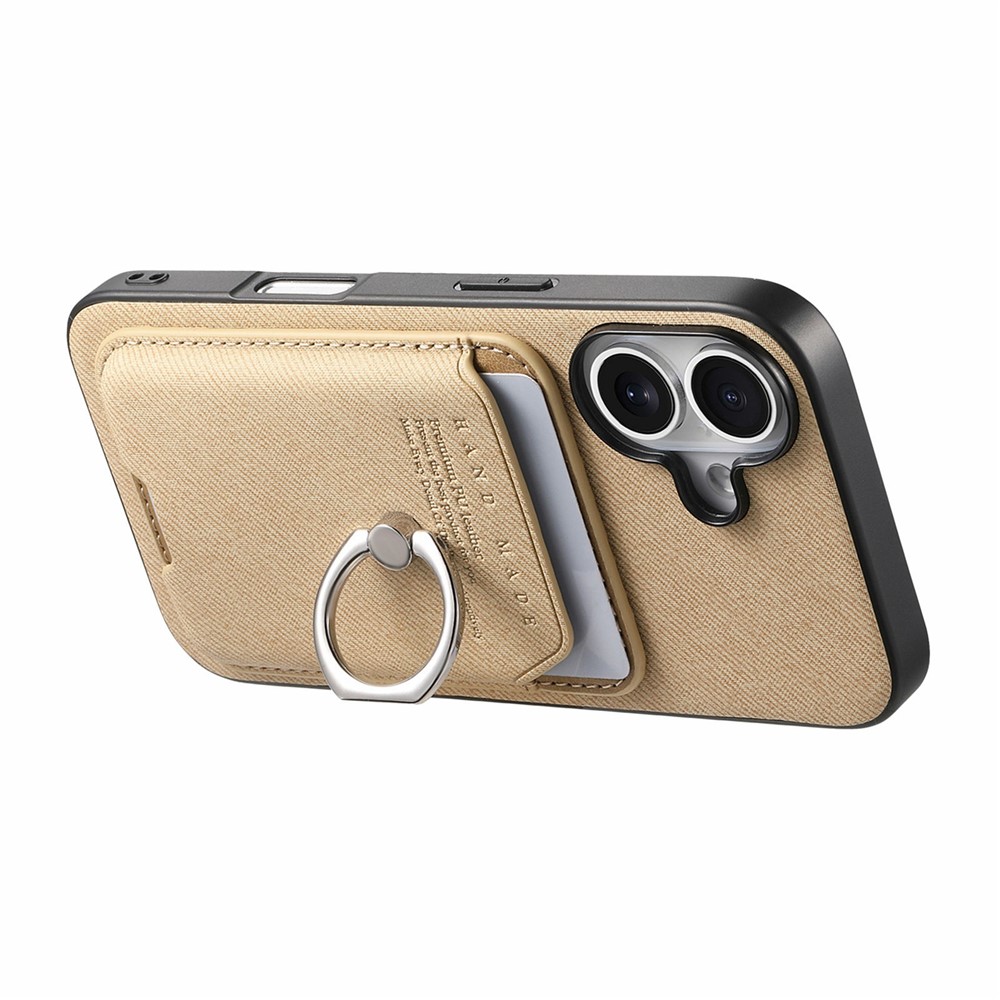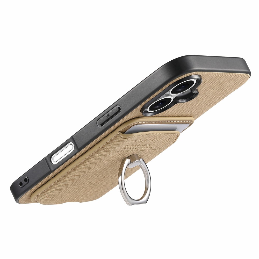 For iPhone 17 Case Cloth Texture Leather + PC + TPU Phone Cover with Detachable Magnetic Ring Kickstand Card Holder - Khaki $18.95