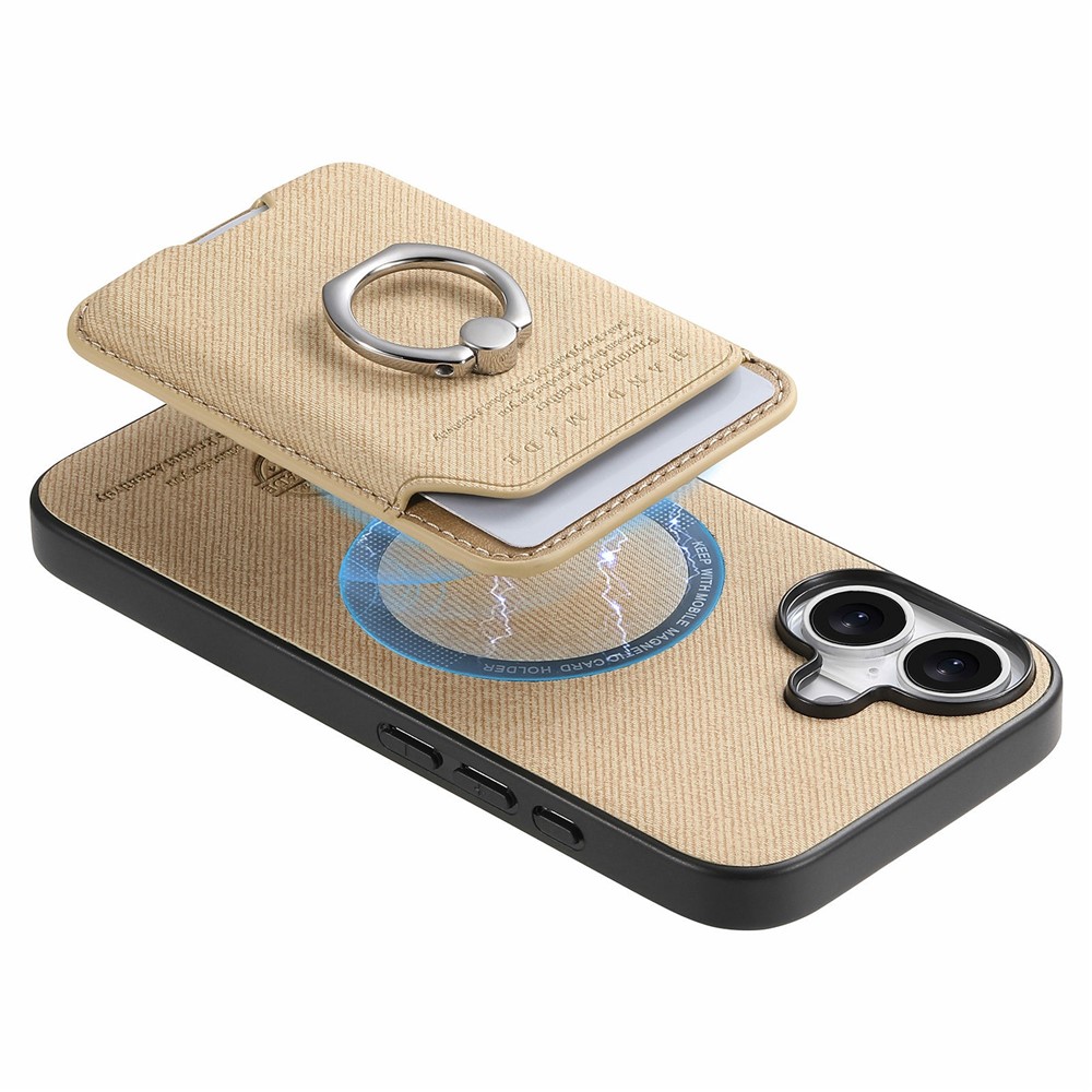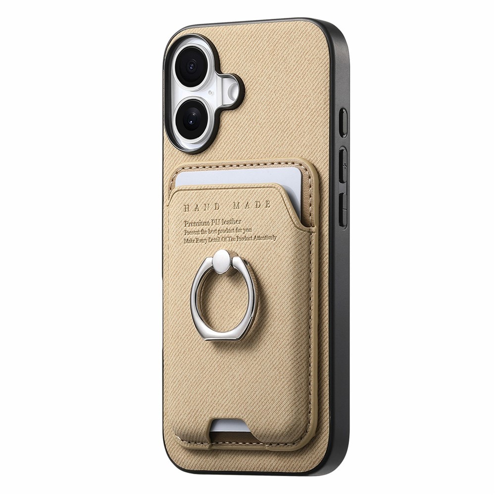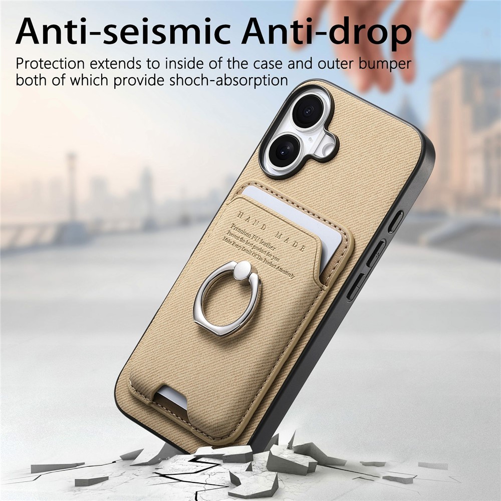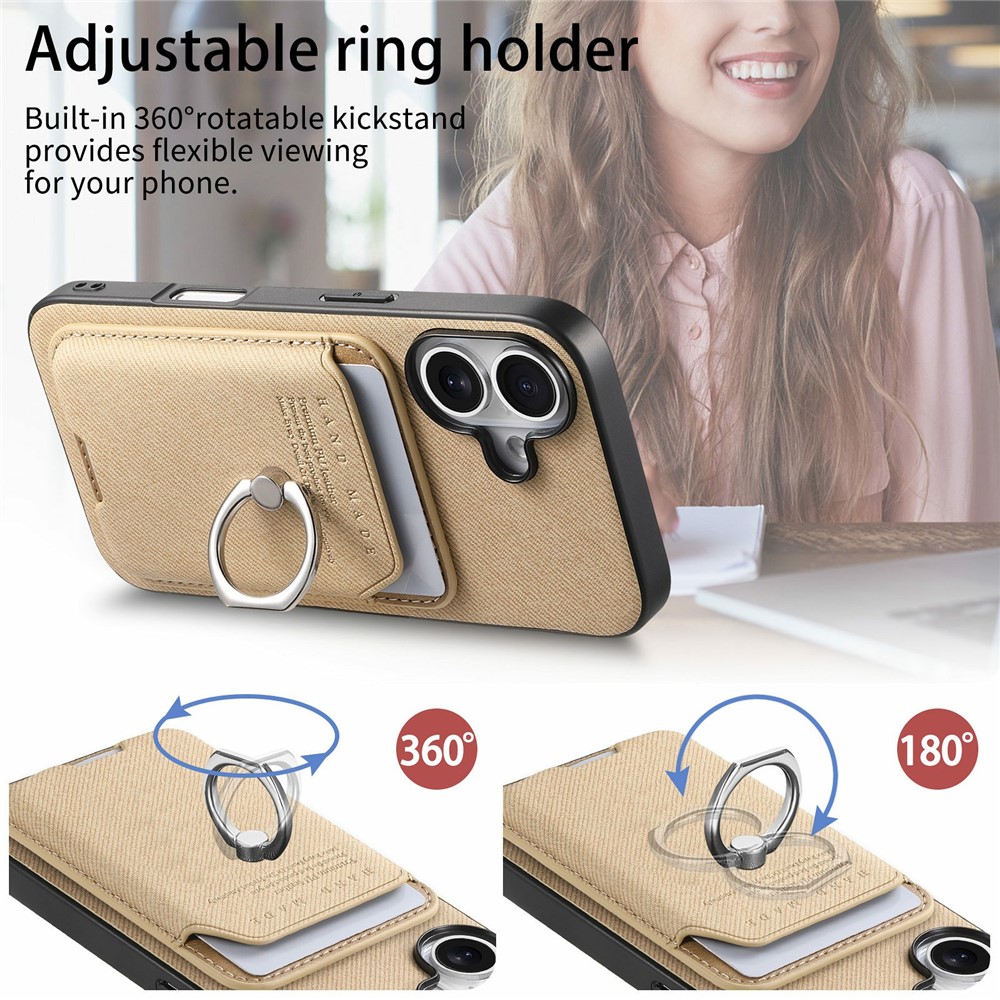 For iPhone 17 Case Cloth Texture Leather + PC + TPU Phone Cover with Detachable Magnetic Ring Kickstand Card Holder - Khaki $18.95