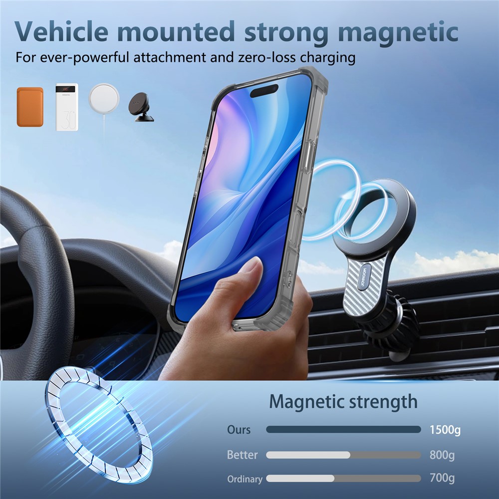 - Magnetic Charging Compatibility The case includes a strong magnetic ring, is compatible with MagSafe chargers and allows it to attach to magnetic car mounts and other magnetic surfaces securely