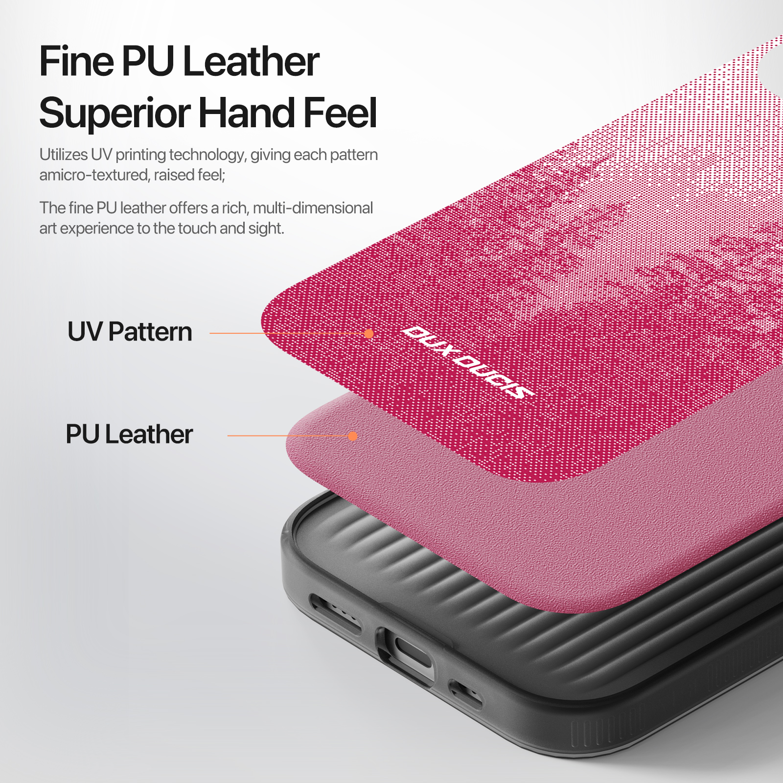 - UV Printing Technology Delicate PU leather coated PC + TPU phone case, which is combined with UV printing technology, creates a subtle textured surface for a comfortable and refined touch.