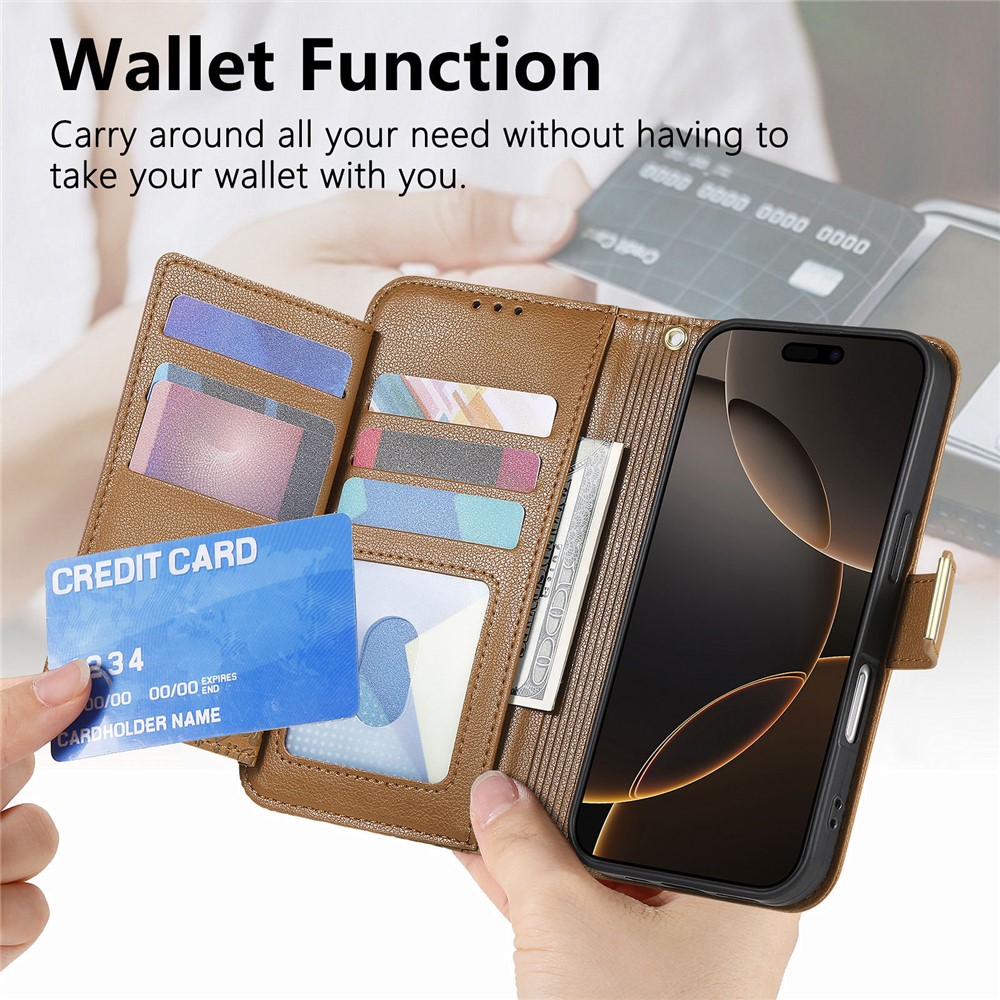 - All-in-One Wallet Function Features multiple card slots and a full-length bill pocket, allowing you to carry credit cards, IDs, and cash without a separate wallet