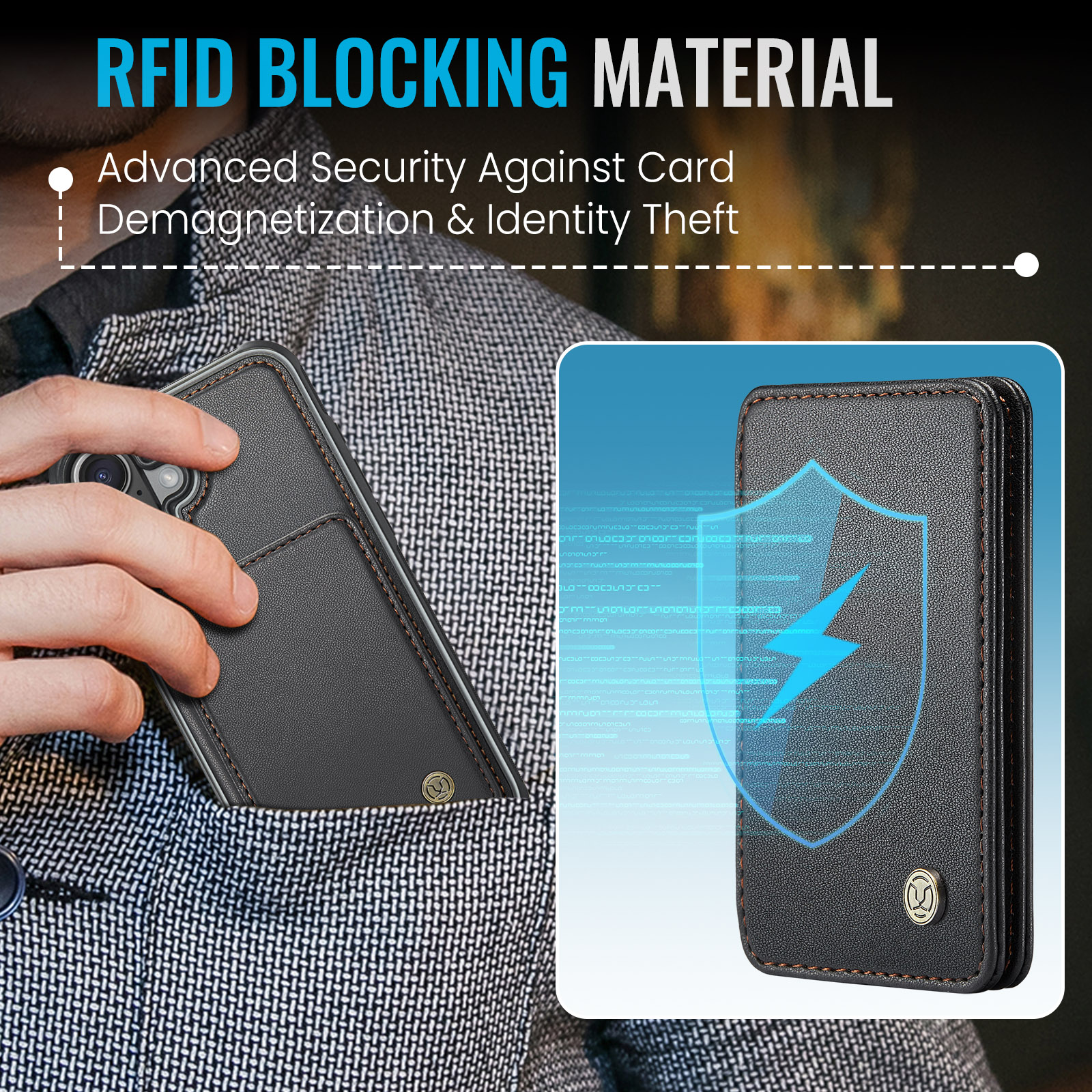 - RFID Blocking The card holder case uses RFID blocking technology, protecting your cards from demagnetization and identity theft, ensuring advanced security for your sensitive information
