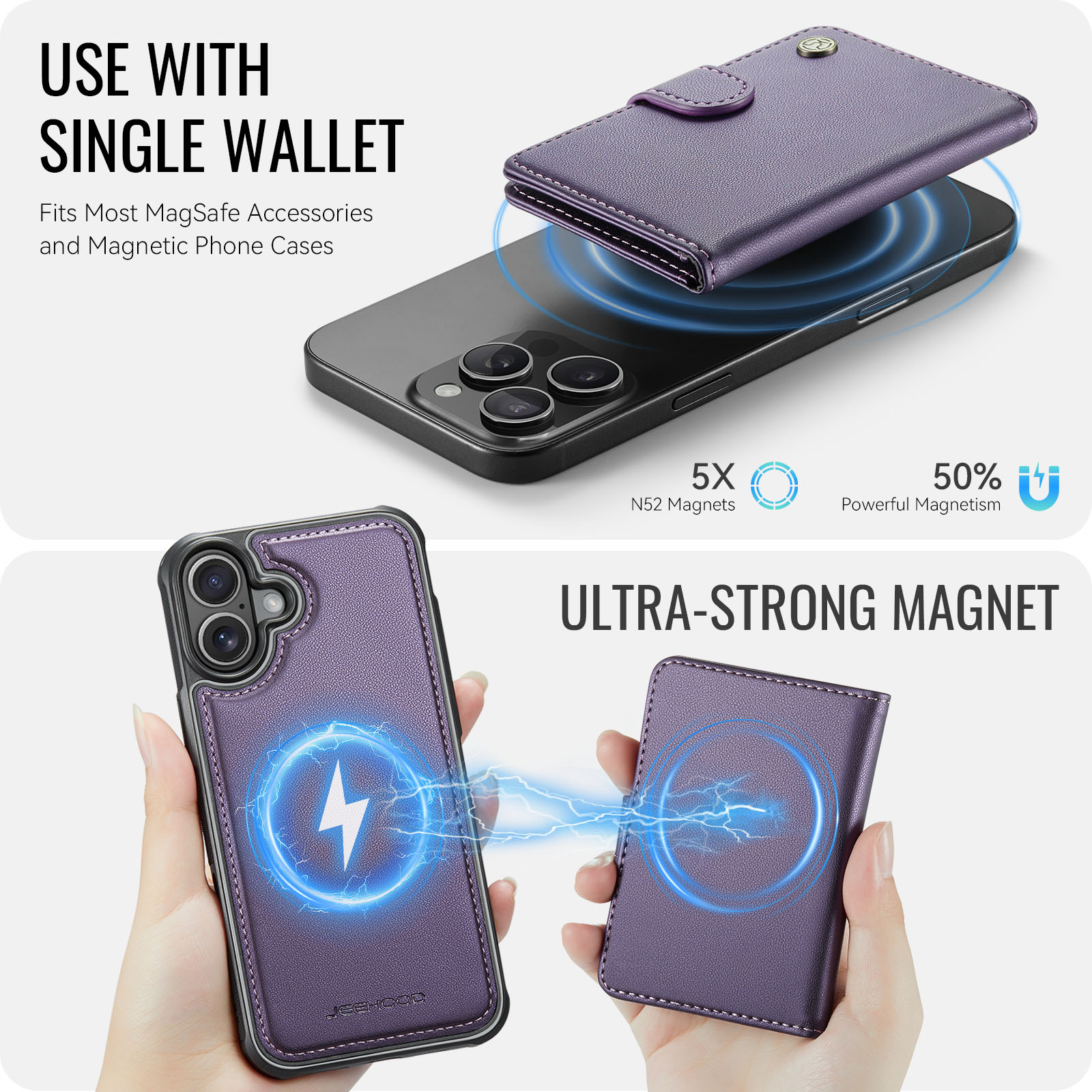 - Detachable Card Wallet The magnetic wallet can be easily removed from the phone case for flexible use, while maintaining a secure magnetic connection when attached.