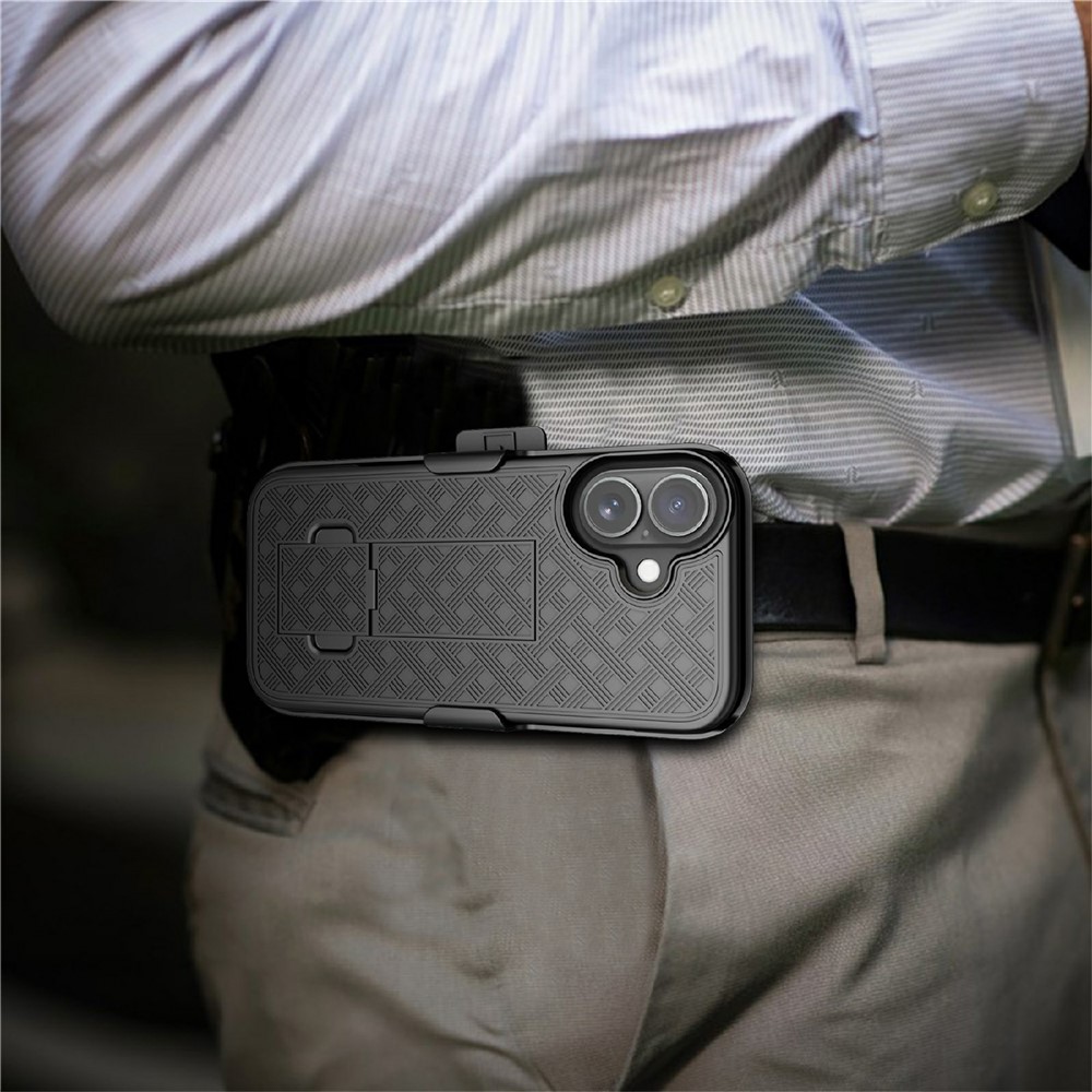 For iPhone 17 Case PC + TPU Sliding Screen Cover Kickstand Phone Shell with Clip