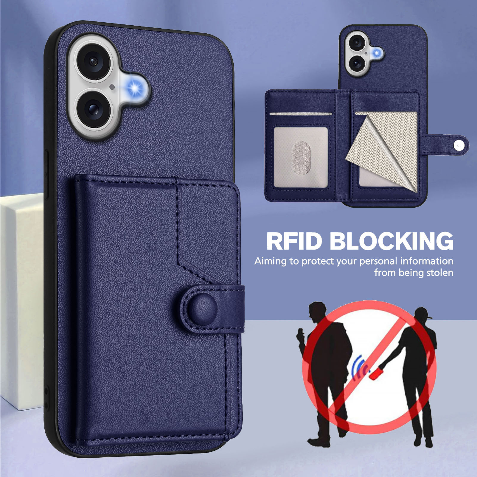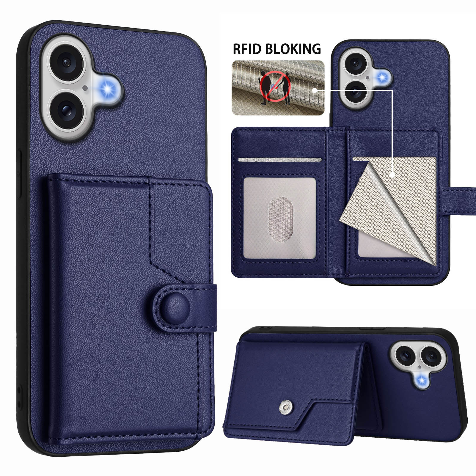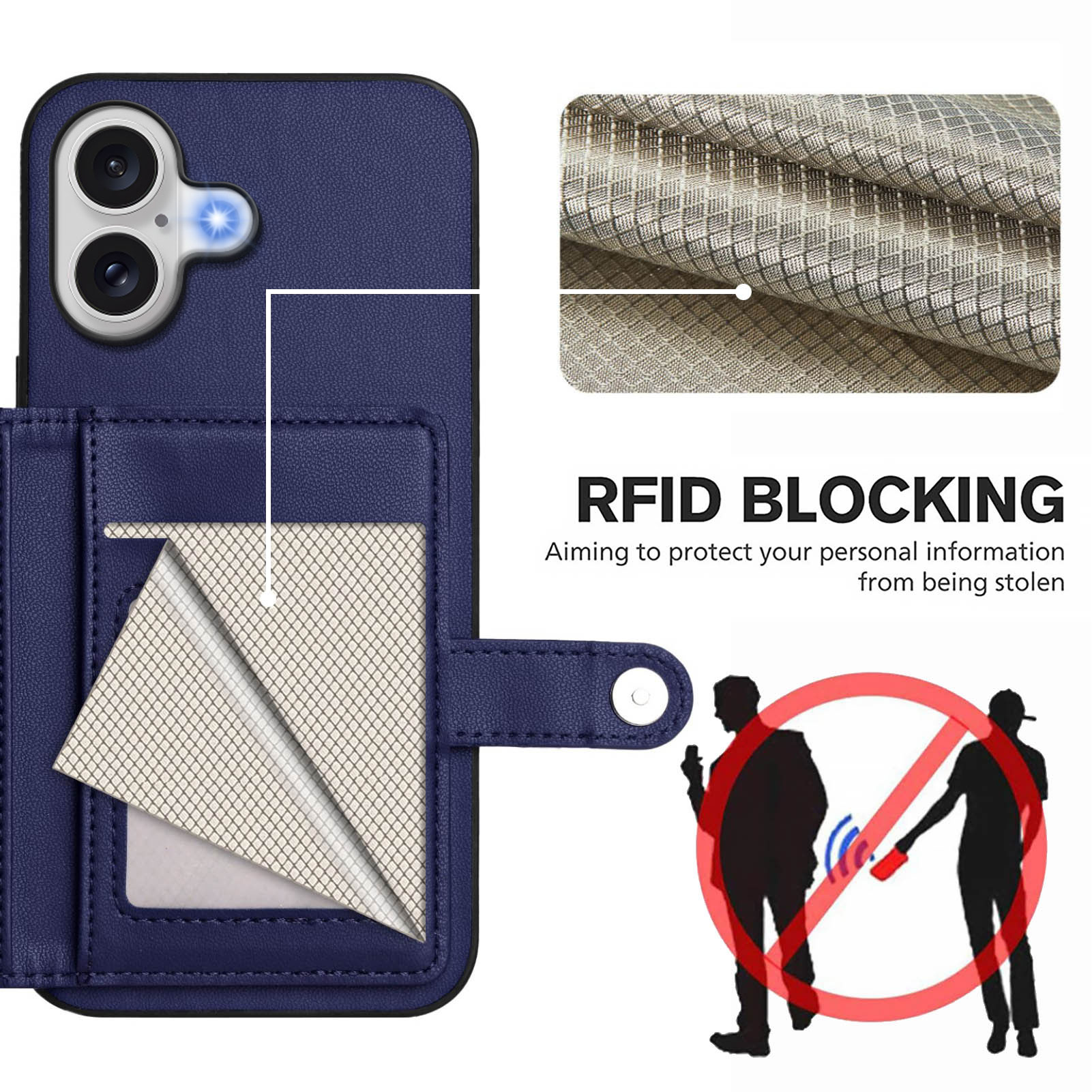 For iPhone 17 Case RFID Blocking Card Holder Kickstand TPU + PU Leather Phone Back Cover - Blue $17.32