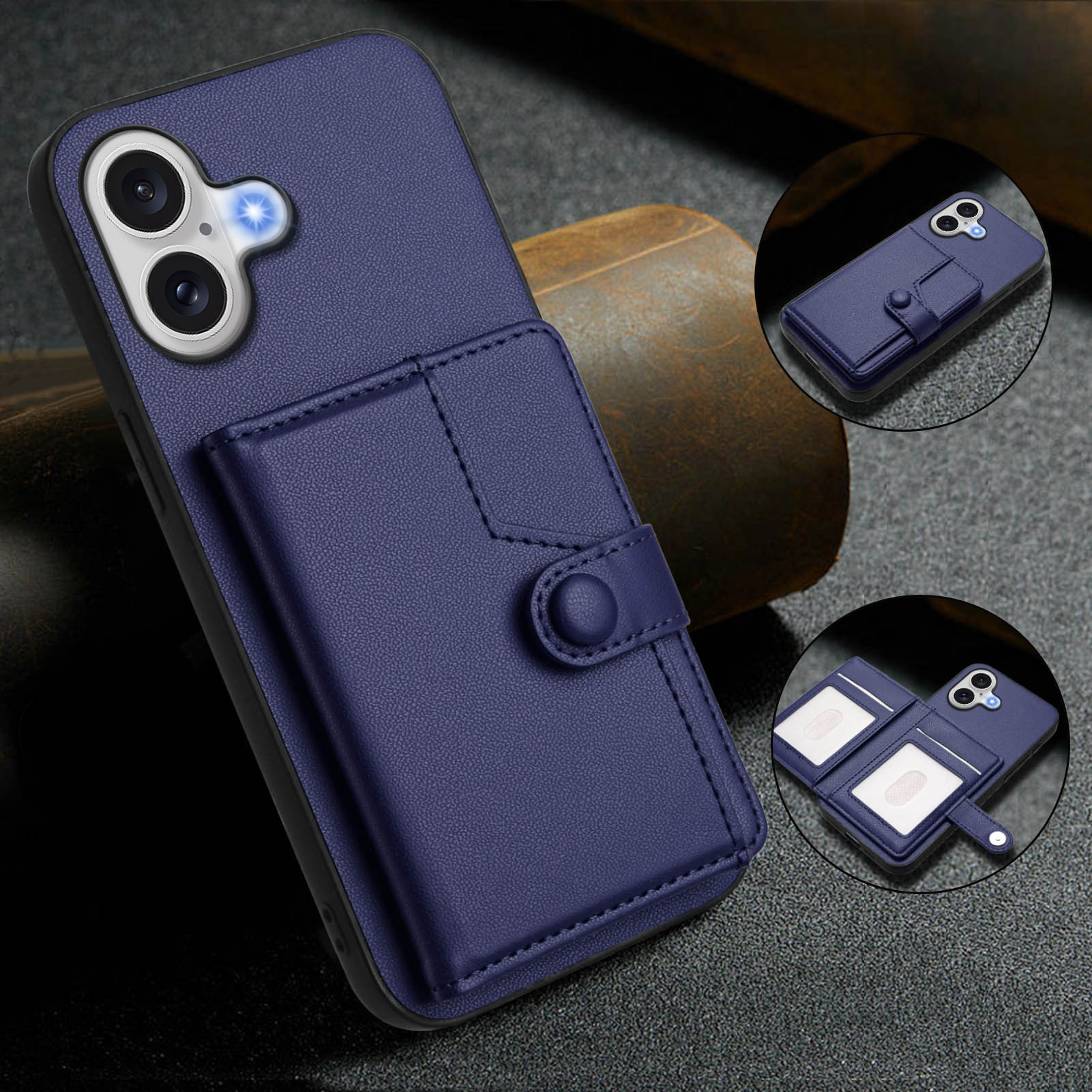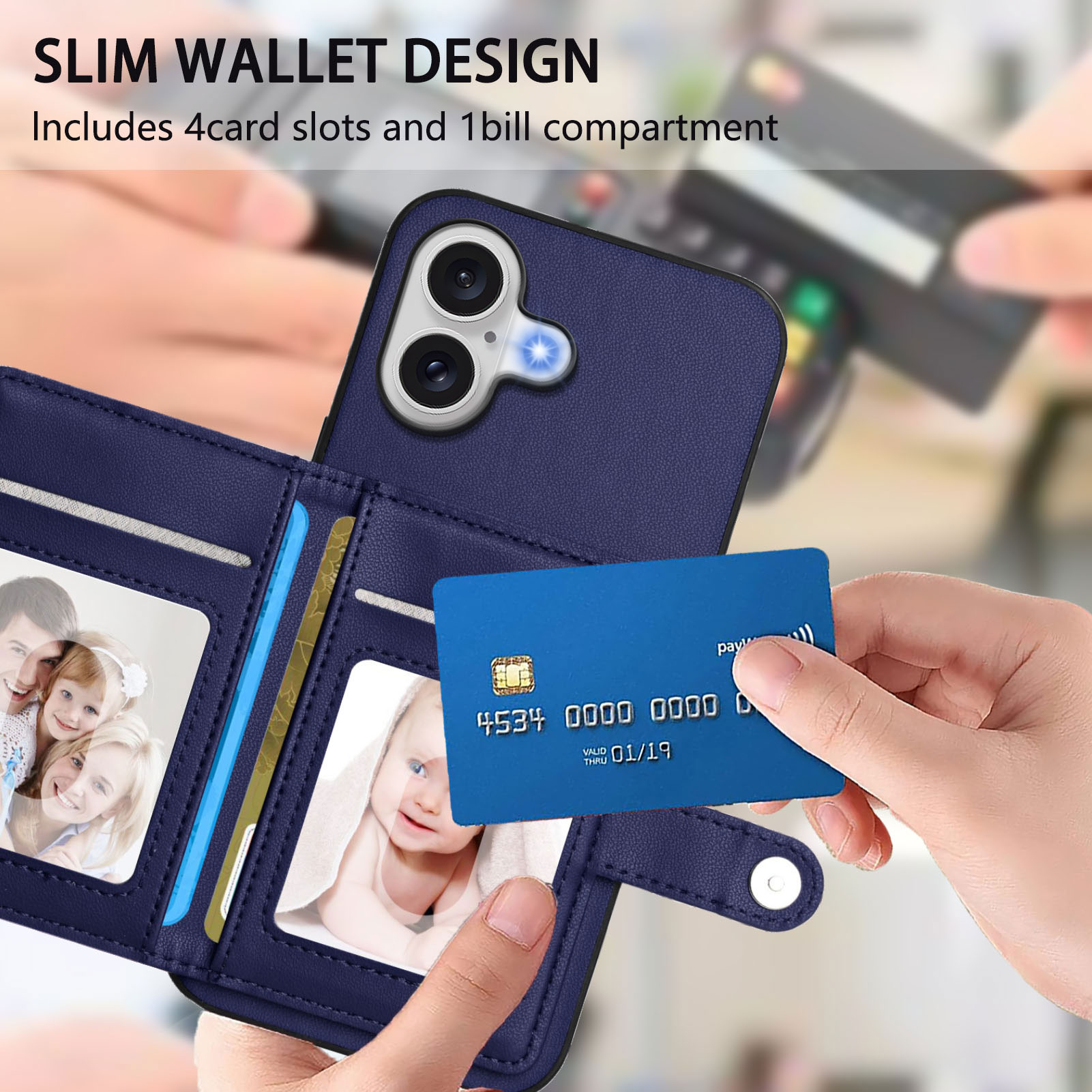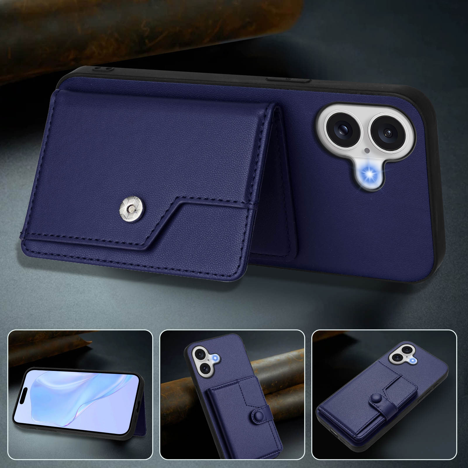 For iPhone 17 Case RFID Blocking Card Holder Kickstand TPU + PU Leather Phone Back Cover - Blue $17.32