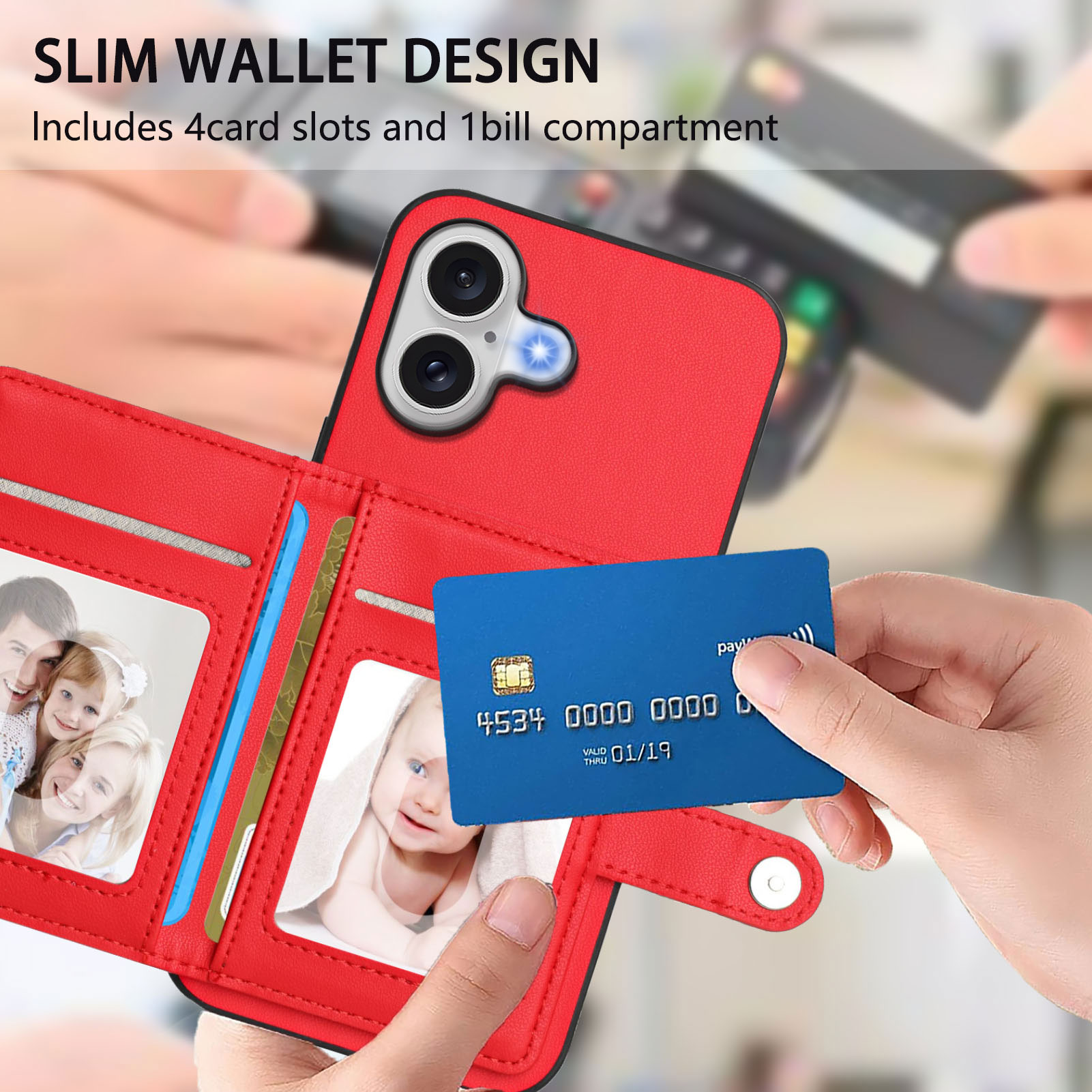 • Multi-Function Card Holder Equipped with 4 dedicated card slots on the back, it provides secure storage for your cards and cash, making it both practical and convenient