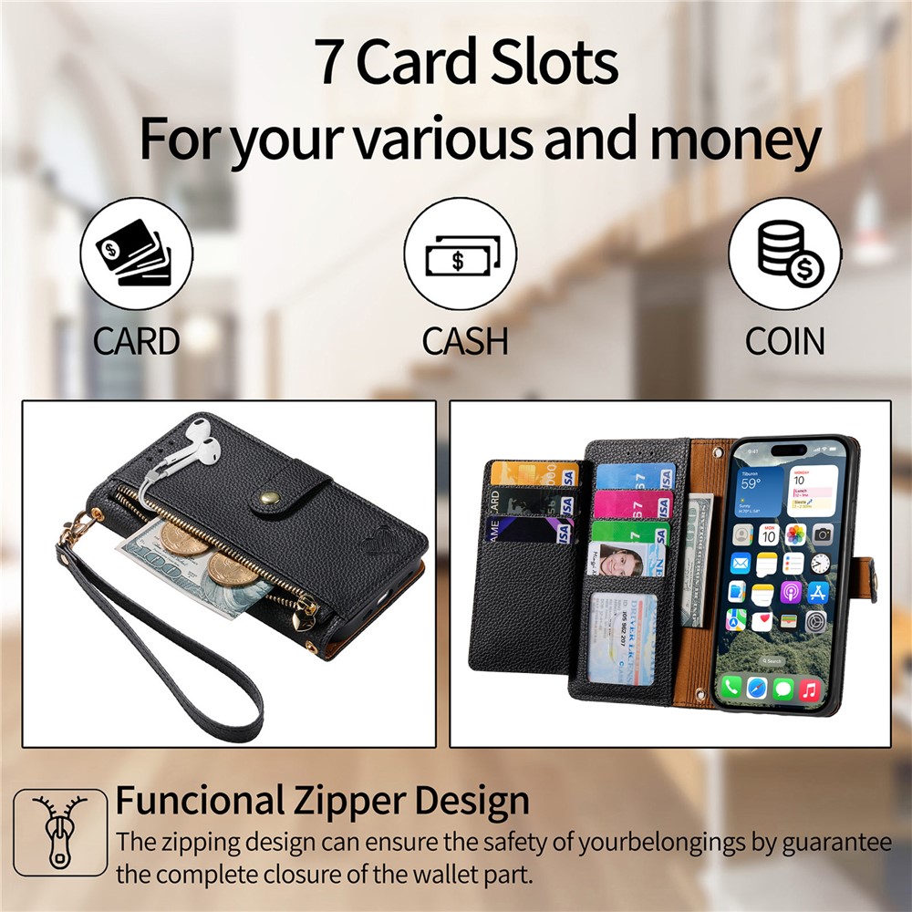 - Convenient Storage Solutions Designed with a zipper pocket, inner card slots, and a cash compartment, it provides ample space for carrying cash, cards, coins, and other essentials