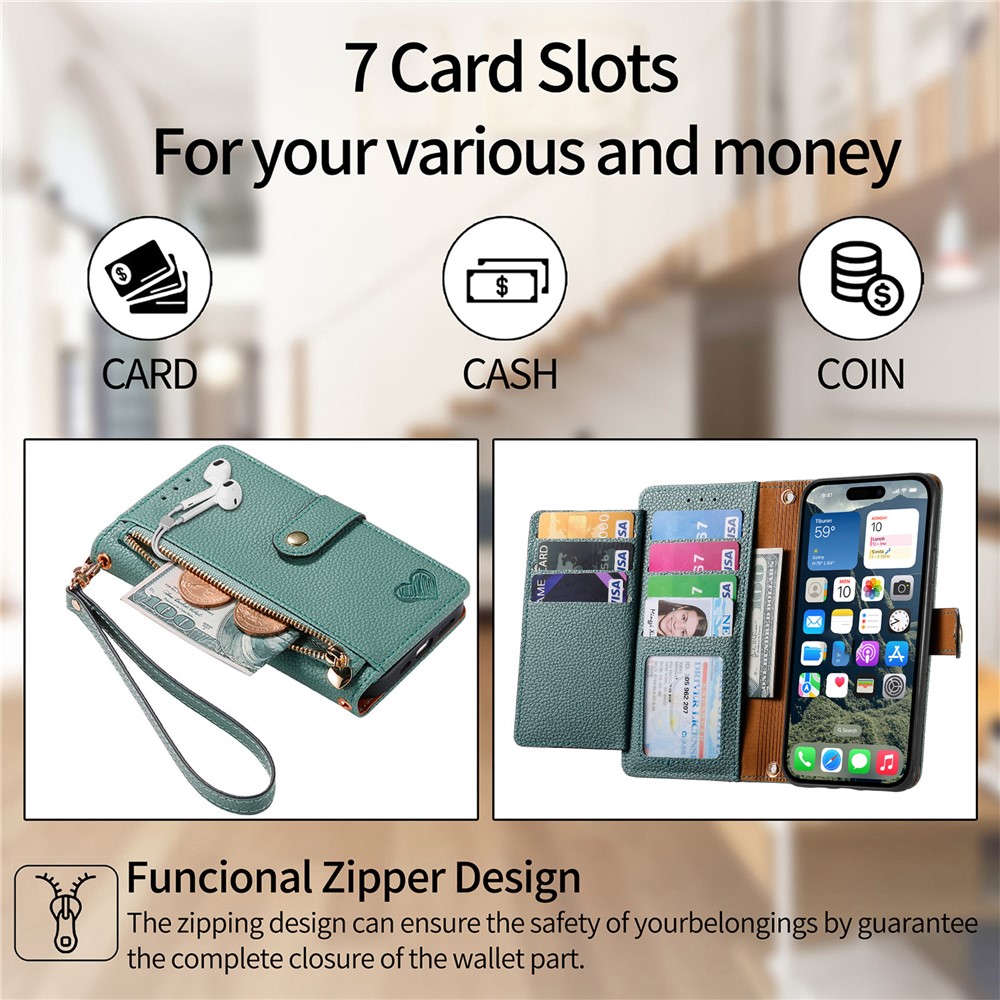 - Premium Material and Stylish Design Made from premium PU leather with a flexible TPU bottom case, it offers a comfortable hand feeling. The imprinted small heart shape and heart-shaped zipper add a touch of style and elegance
