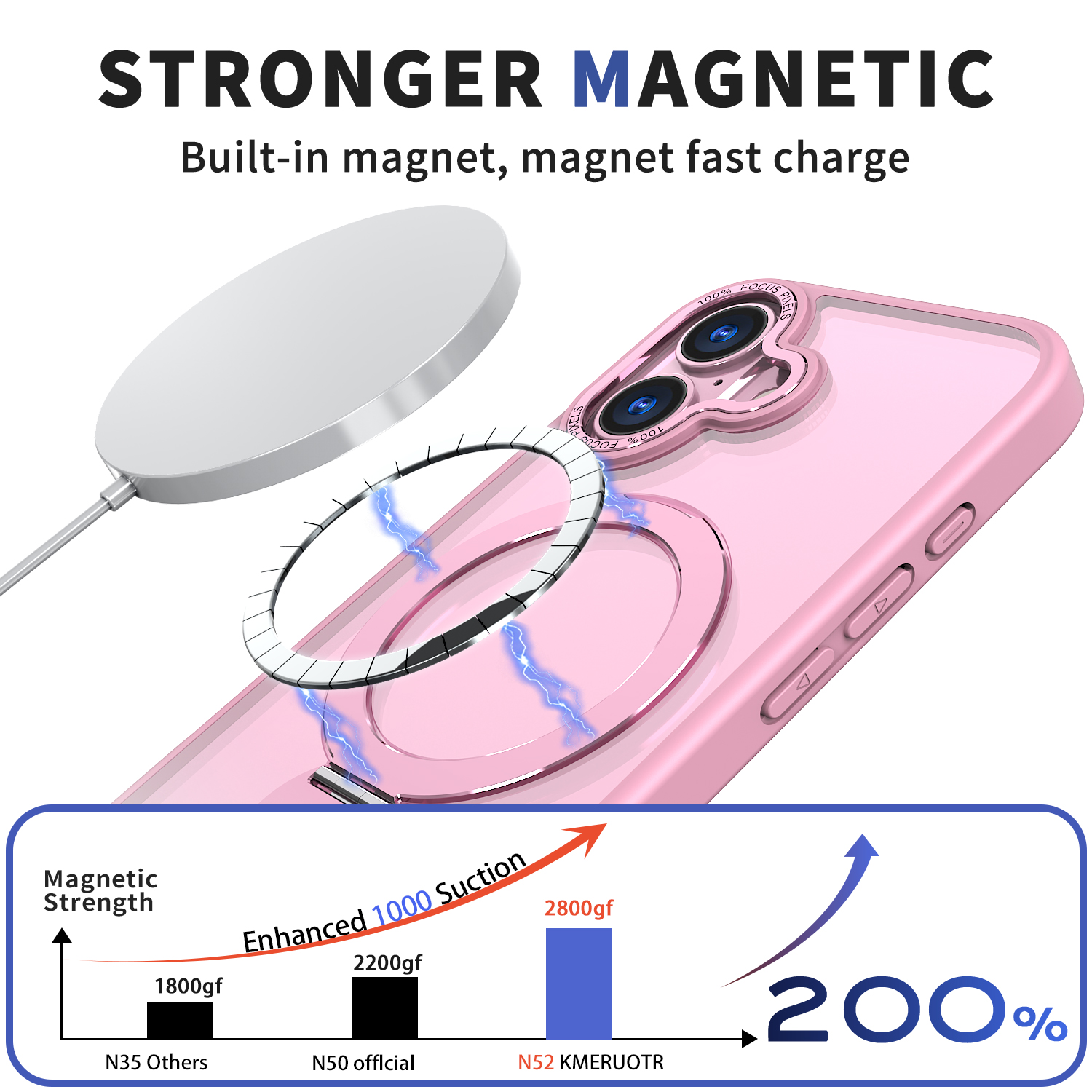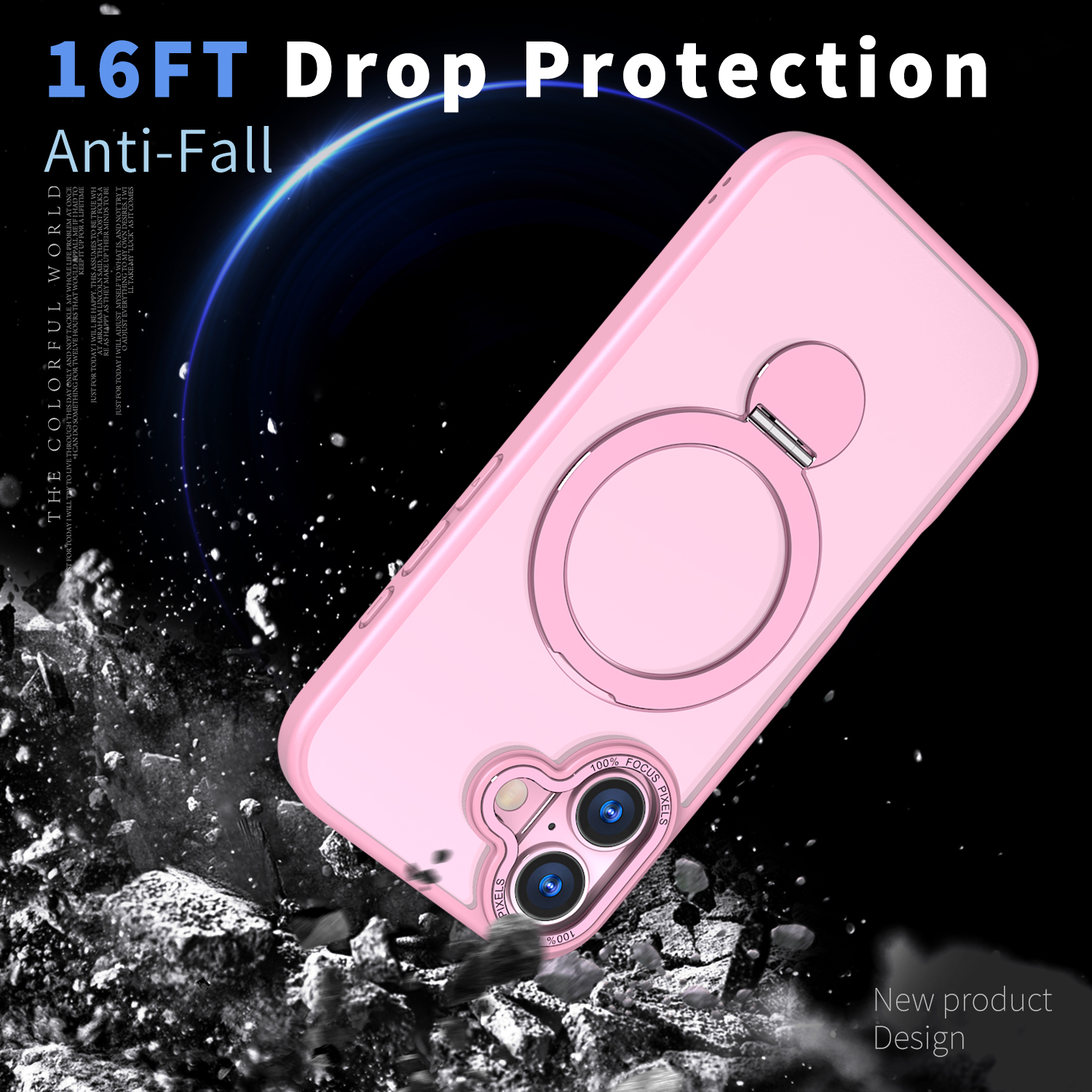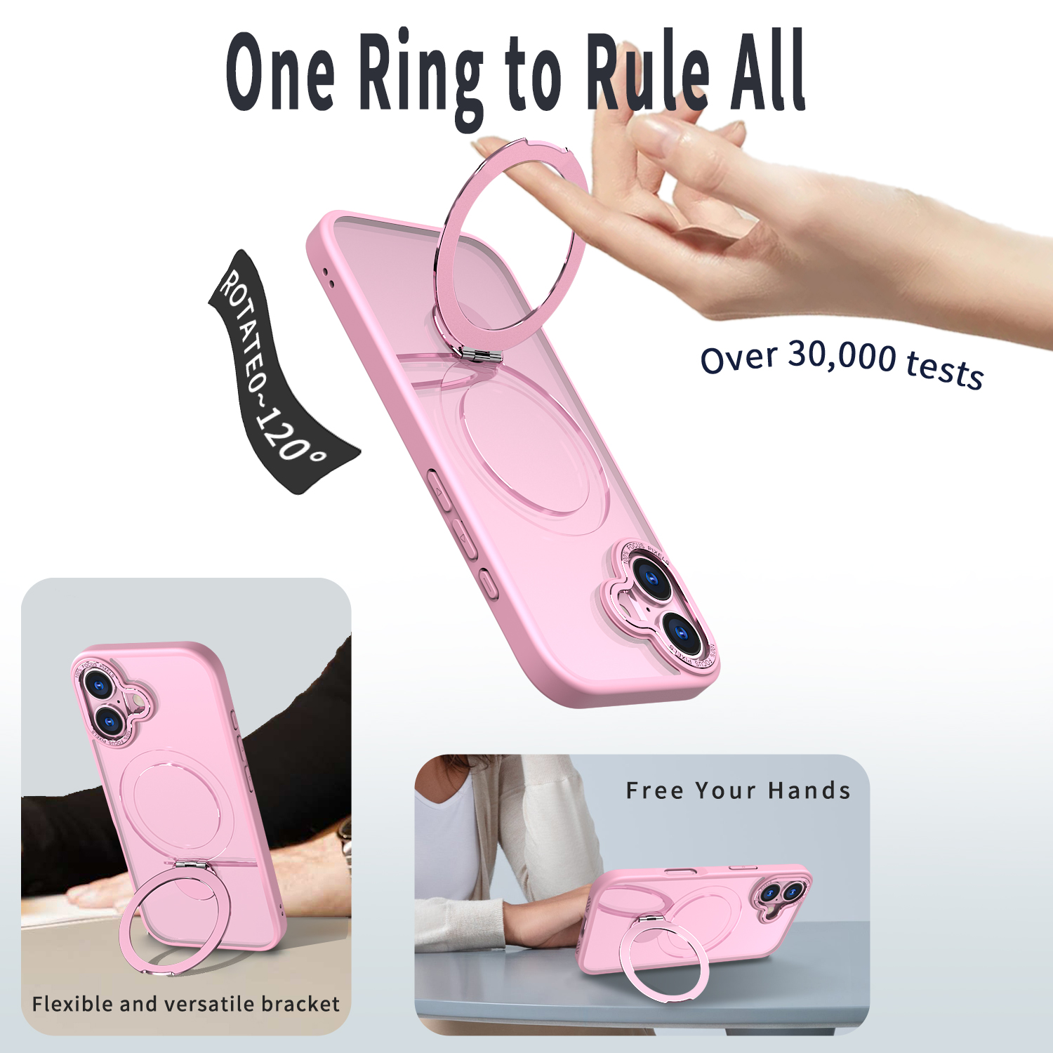 For iPhone 17 Case Rotating Kickstand Skin-touch TPU + PC Phone Cover Compatible with MagSafe – Pink