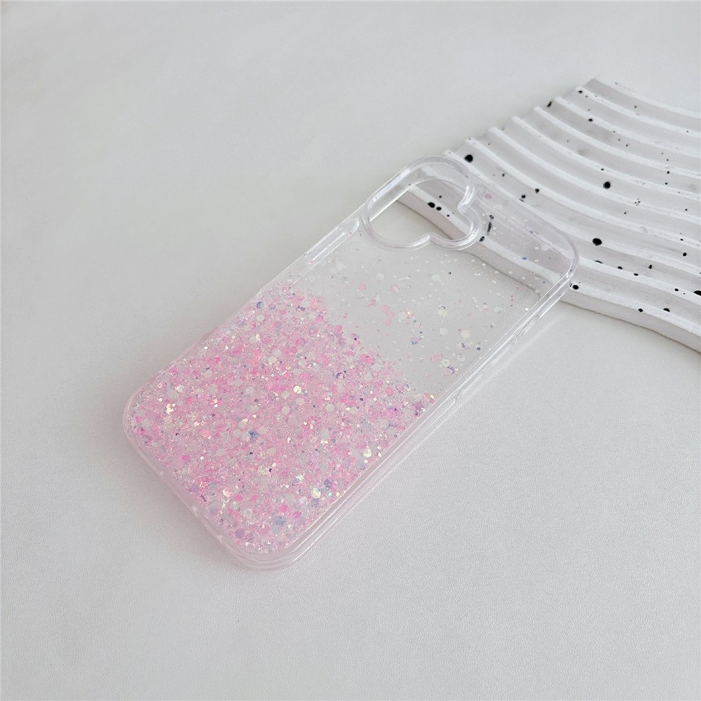 For iPhone 17 Case Sparkle Sequins Luminous Epoxy TPU Phone Cover – Pink