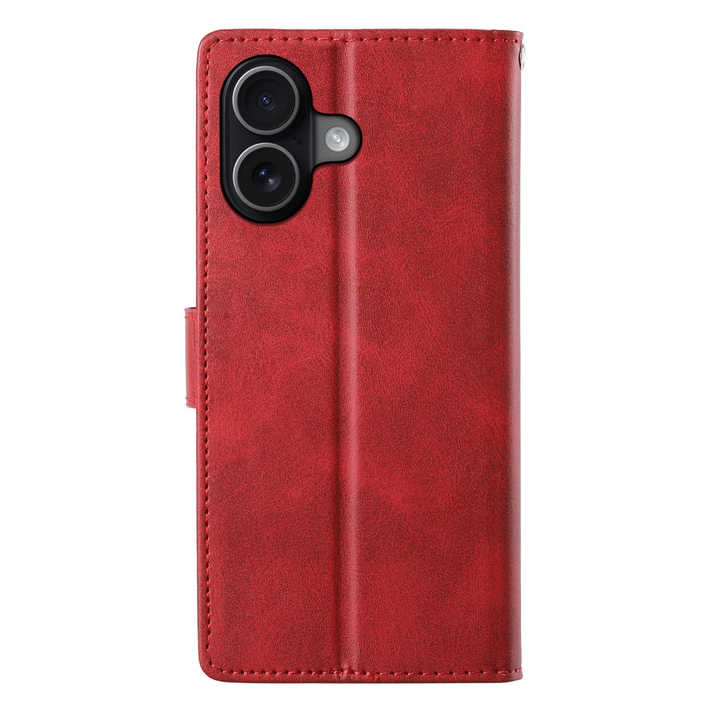 For iPhone 17 Case Stand Wallet Calf Texture PU Leather Flip Phone Cover with Wrist Strap - Red