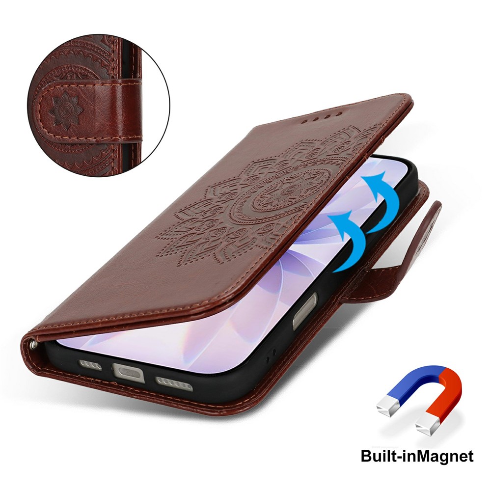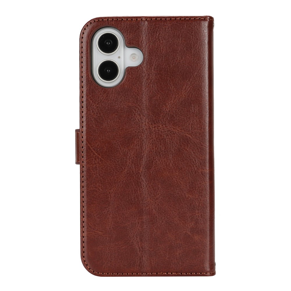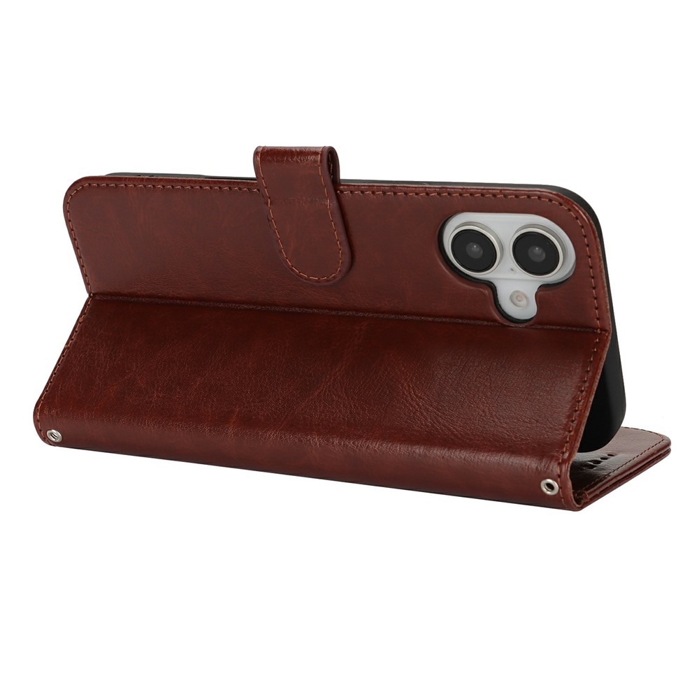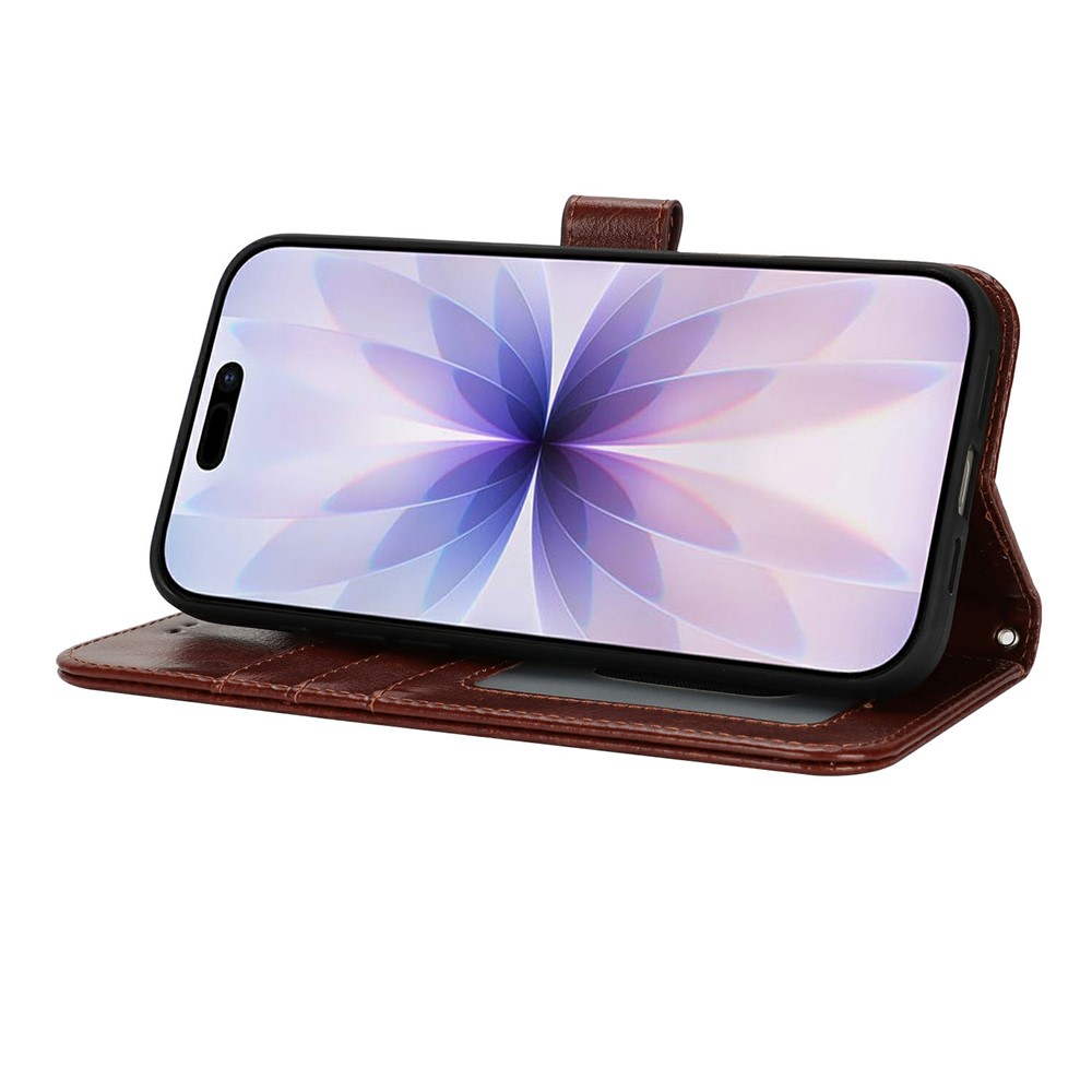 For iPhone 17 Case Textured Leather Wallet Phone Cover with Strap – Dark Brown