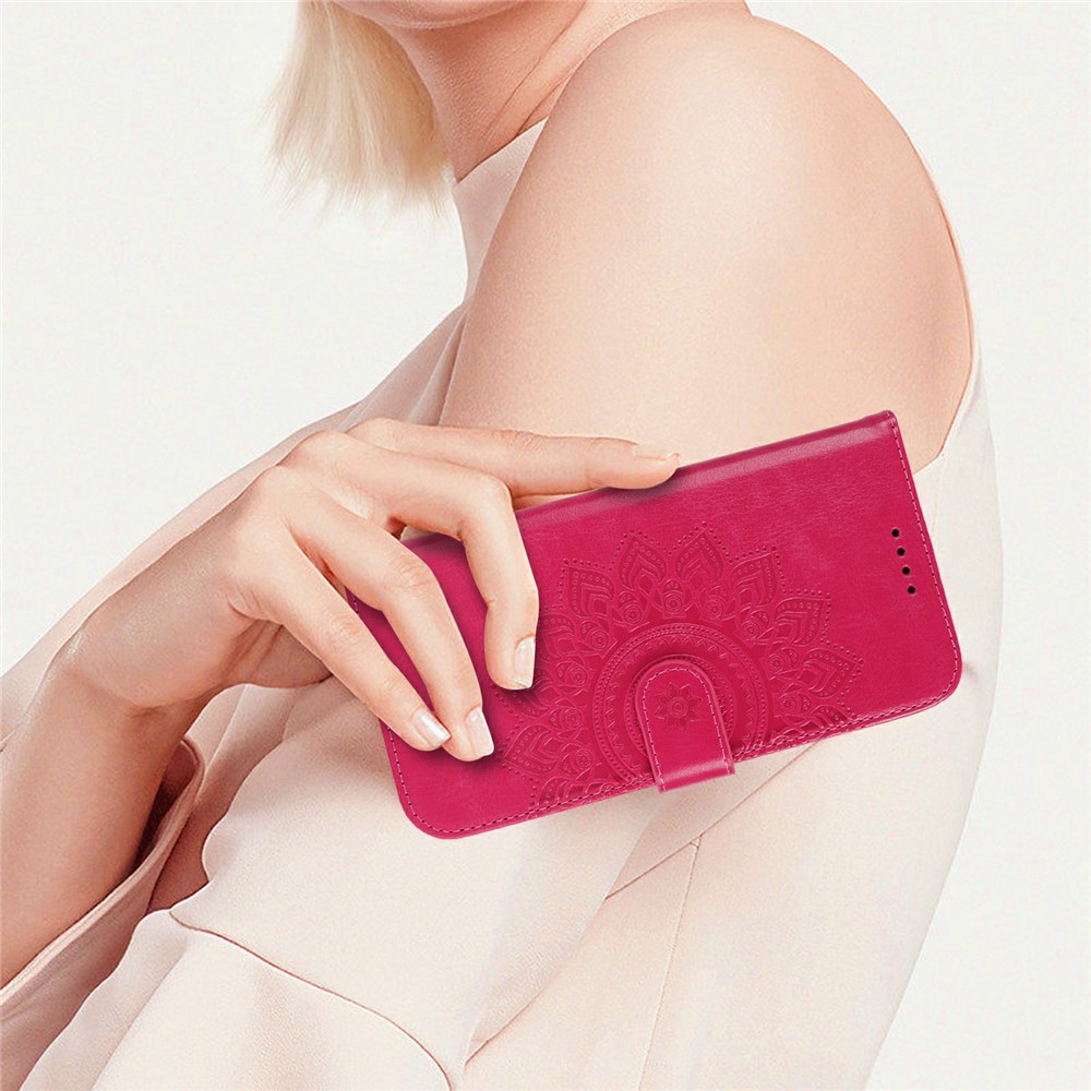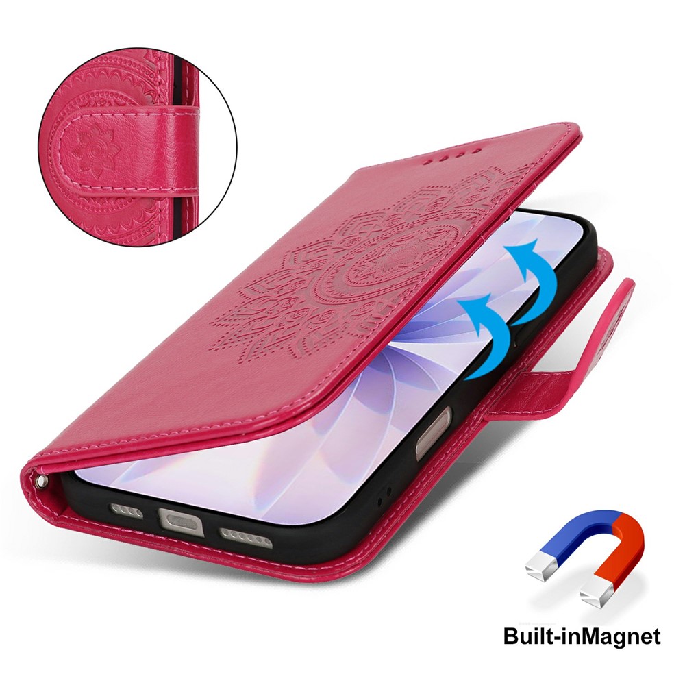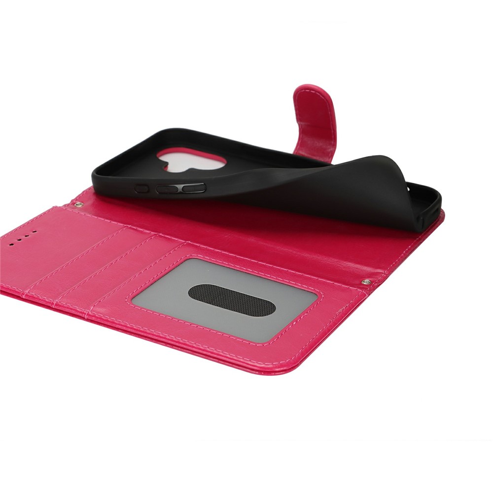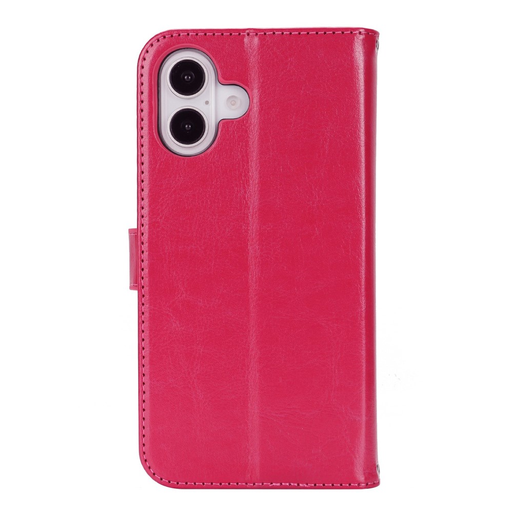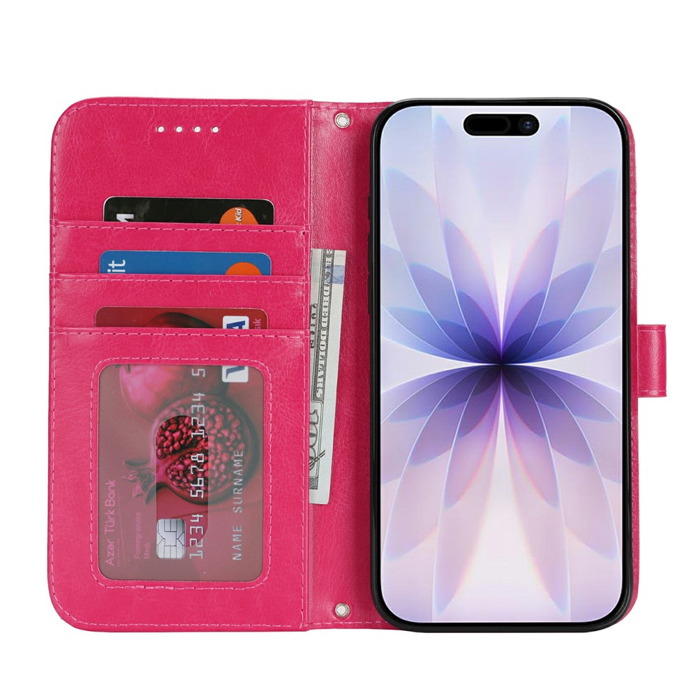 For iPhone 17 Case Textured Leather Wallet Phone Cover with Strap – Rose