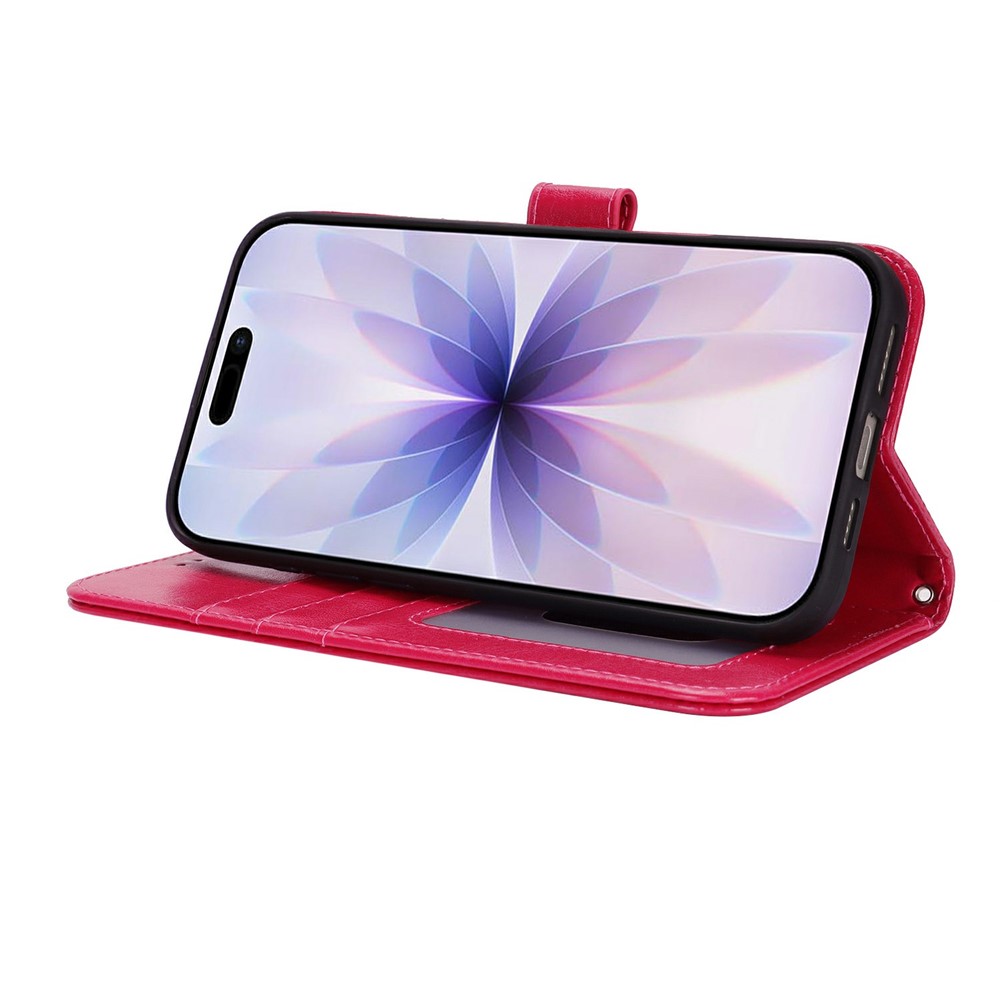 For iPhone 17 Case Textured Leather Wallet Phone Cover with Strap - Rose