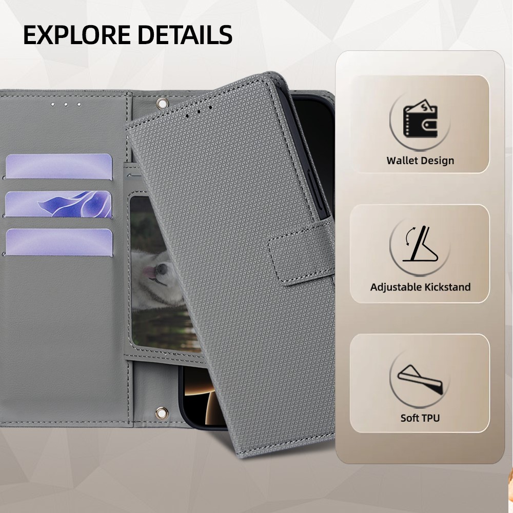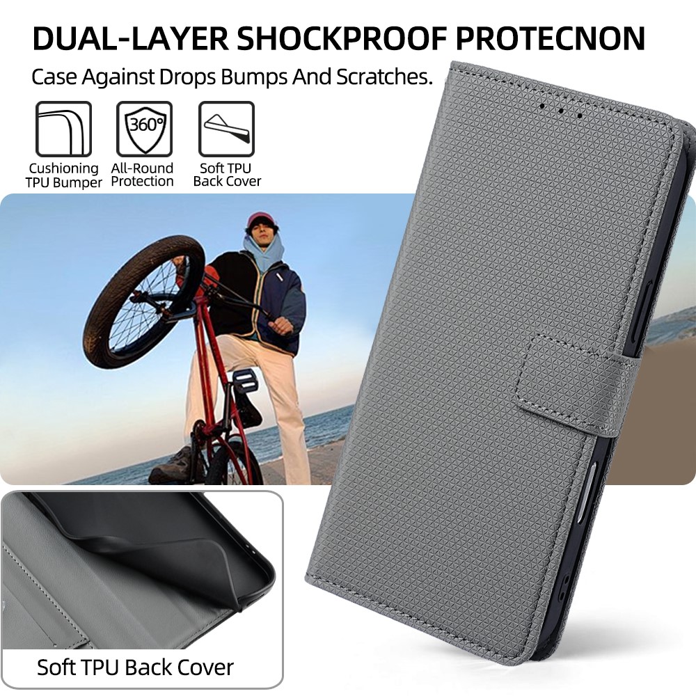 - Premium Material & Texture Crafted from smooth-touch, triangle-pattern imprinted PU leather with a soft TPU inner shell, this case combines durability with a refined, skin-friendly feel.
