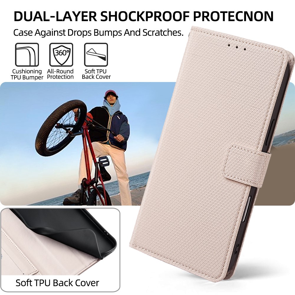- Premium Material & Texture Crafted from smooth-touch, triangle-pattern imprinted PU leather with a soft TPU inner shell, this case combines durability with a refined, skin-friendly feel.