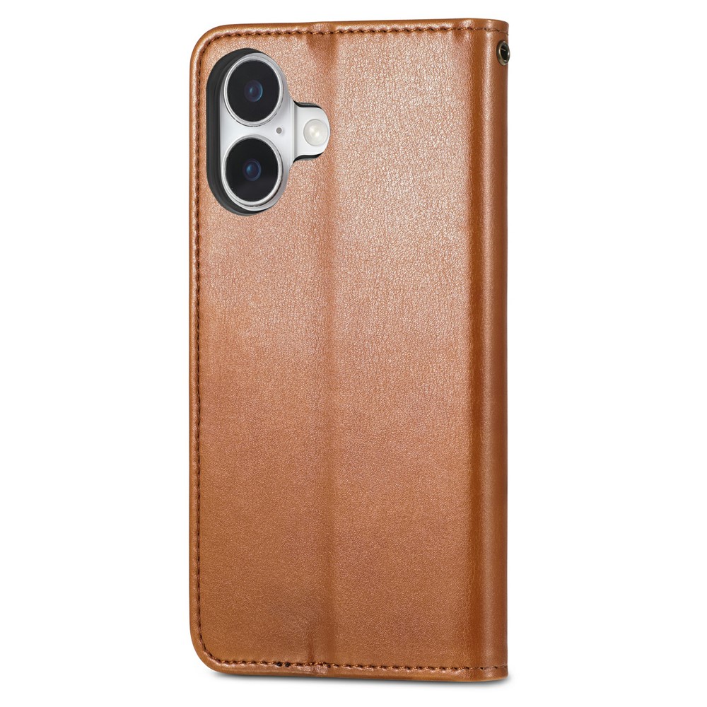 For iPhone 17 Case Wallet Stand Leather Phone Cover with Wrist Strap - Brown