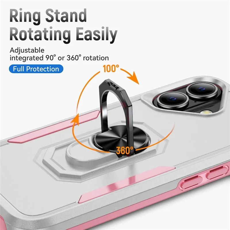 - 360 Degree Rotating Ring Kickstand Integrated ring holder rotates 360 degrees and flips 100 degrees, serving as a secure grip or kickstand for hands-free viewing.