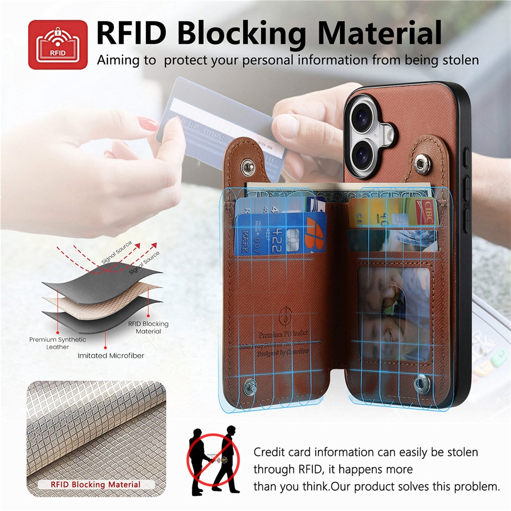 - Dual-Side RFID Blocking Card Slots Secures 2 cards on each side with RFID-shielding material, preventing wireless theft of credit card or ID data